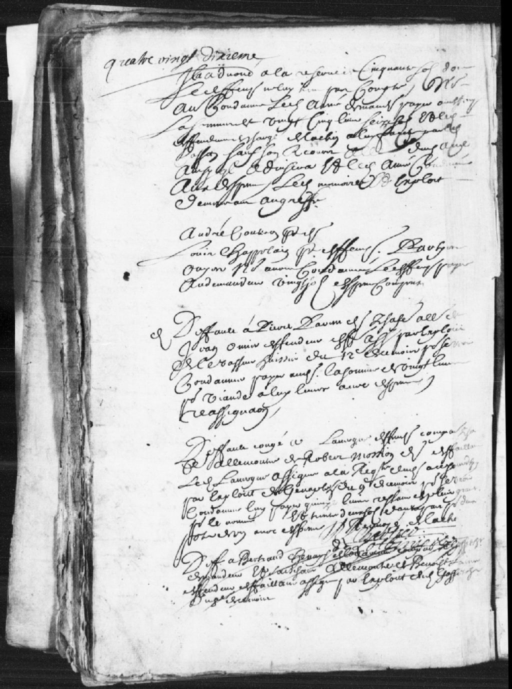 Cause entre Bertrand Chesnay (Chenay - Chenet), sieur de LaGarenne, comparant par l'huissier Gosset, demandeur, et Benoît Laîné (Laisné), défendeur ; un défaut est accordé au demandeur à l'encontre dudit défendeur, défaillant