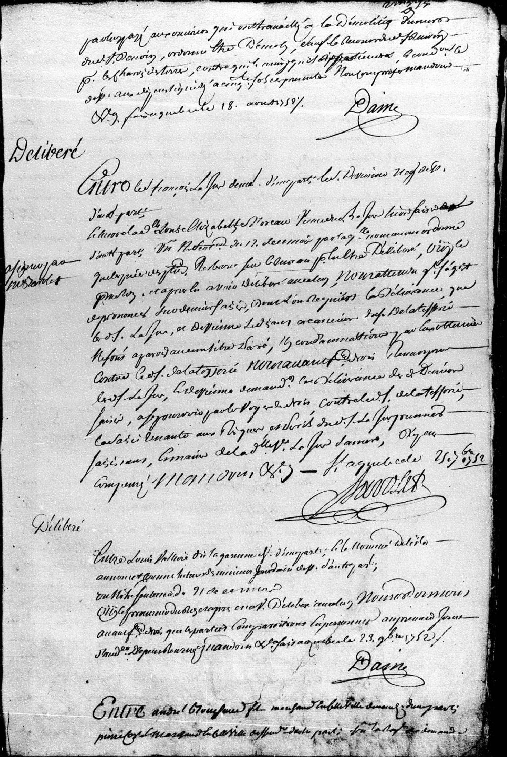 Délibéré entre le sieur François Lajus, demandeur, et le sieur Devienne (Daveine), négociant, défendeur ; les parties sont renvoyées