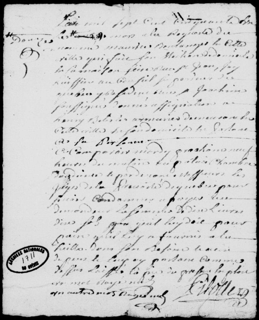 À la requête du nommé Maurice, boulanger, domicilié rue Saint-Jean à Québec, assignation d'Henri Bélisle (Belleisle), armurier de Québec, afin qu'il paie au requérant la somme de 10 livres et 10 sols qu'il lui doit pour du pain qu'il lui a fourni, avec dépens, 12 mars 1751, Archives nationales à Québec, Fonds Prévôté de Québec, (03Q,TL1,S11,SS2,D1711).