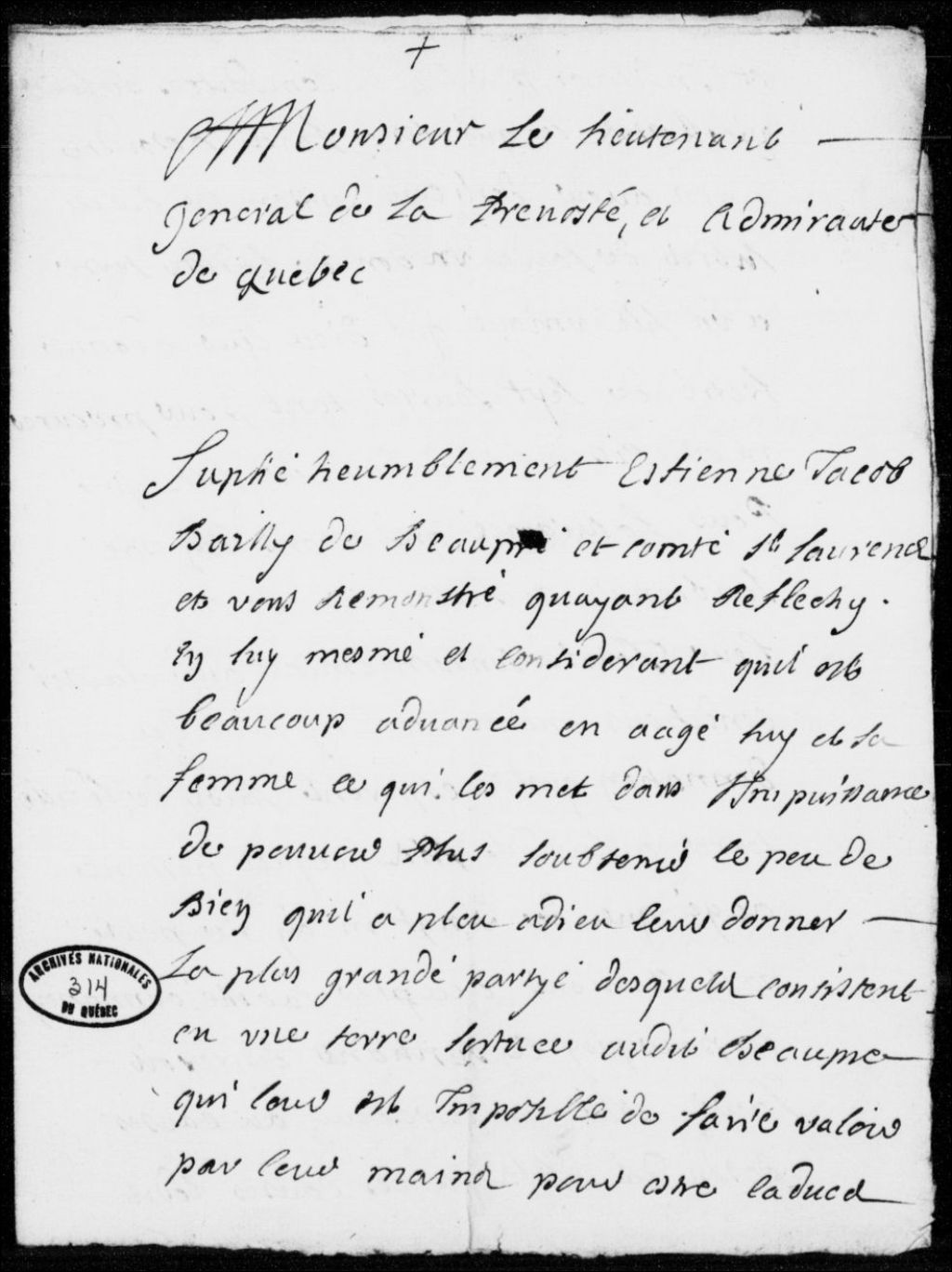 Requête d'Étienne Jacob, bailli à Beaupré et dans le comté de Saint-Laurent, époux de Jeanne Fressel, demandant la convocation d'une assemblée d'amis, à défaut de parents, afin d'élire un curateur pour Joseph Jacob, son fils âgé de 21 ans, suivie du procès-verbal de ladite assemblée, 18 juin 1712, Archives nationales à Québec, Fonds Prévôté de Québec, (03Q,TL1,S11,SS2,D314).