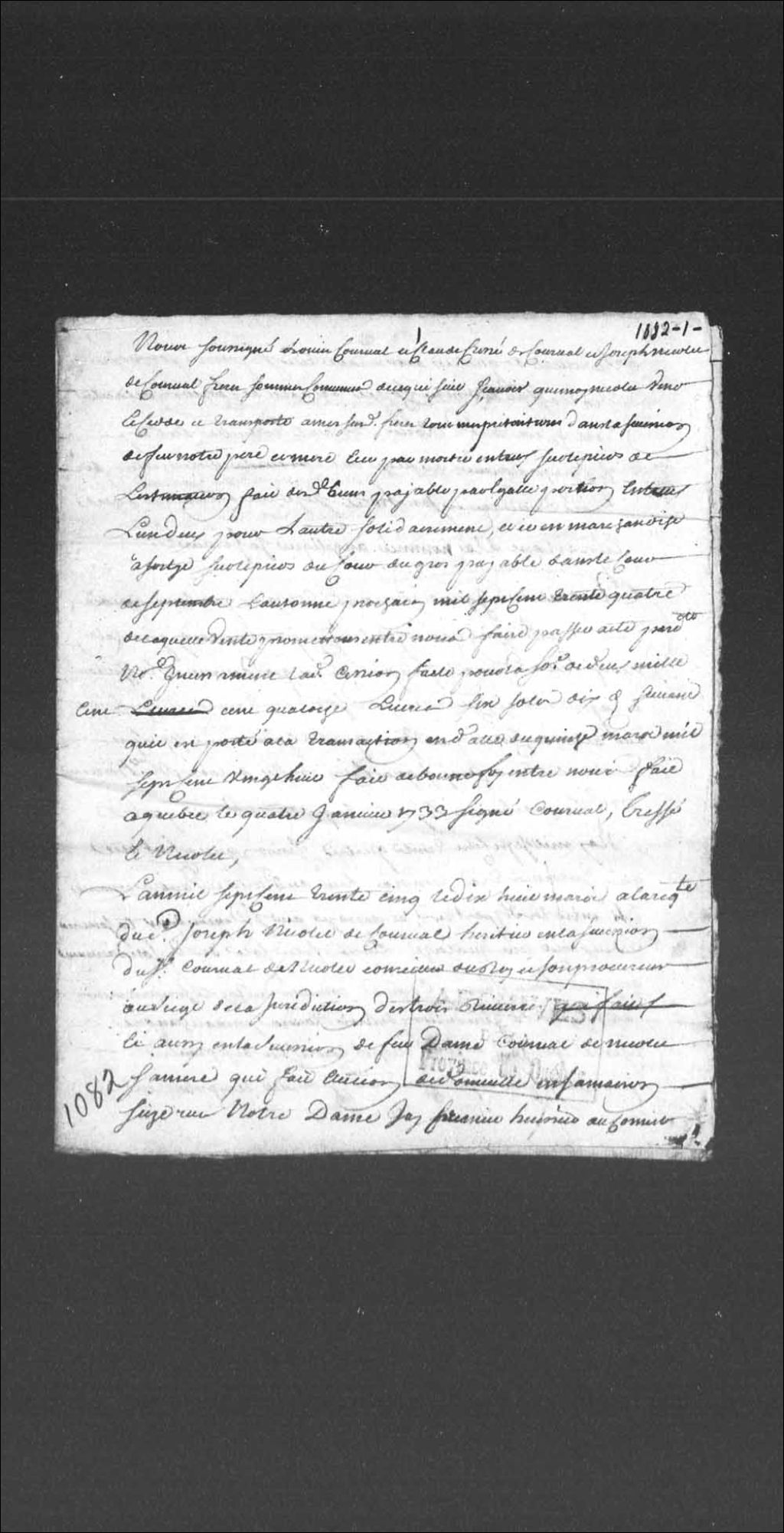 - Difficultés entre Claude Cressé de Courval, bourgeois de Québec, et Joseph Nicolet de Courval, son frère, concernant la succession du sieur de Courval