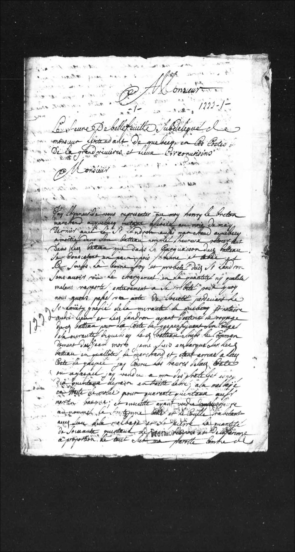 Procès opposant François Landron (Landeron), négociant de Québec, contre Henri LeBreton (Le Breton), marchand de Québec, à propos d'une association entre les deux hommes concernant le navire de Landron «l'Heureux Retour»