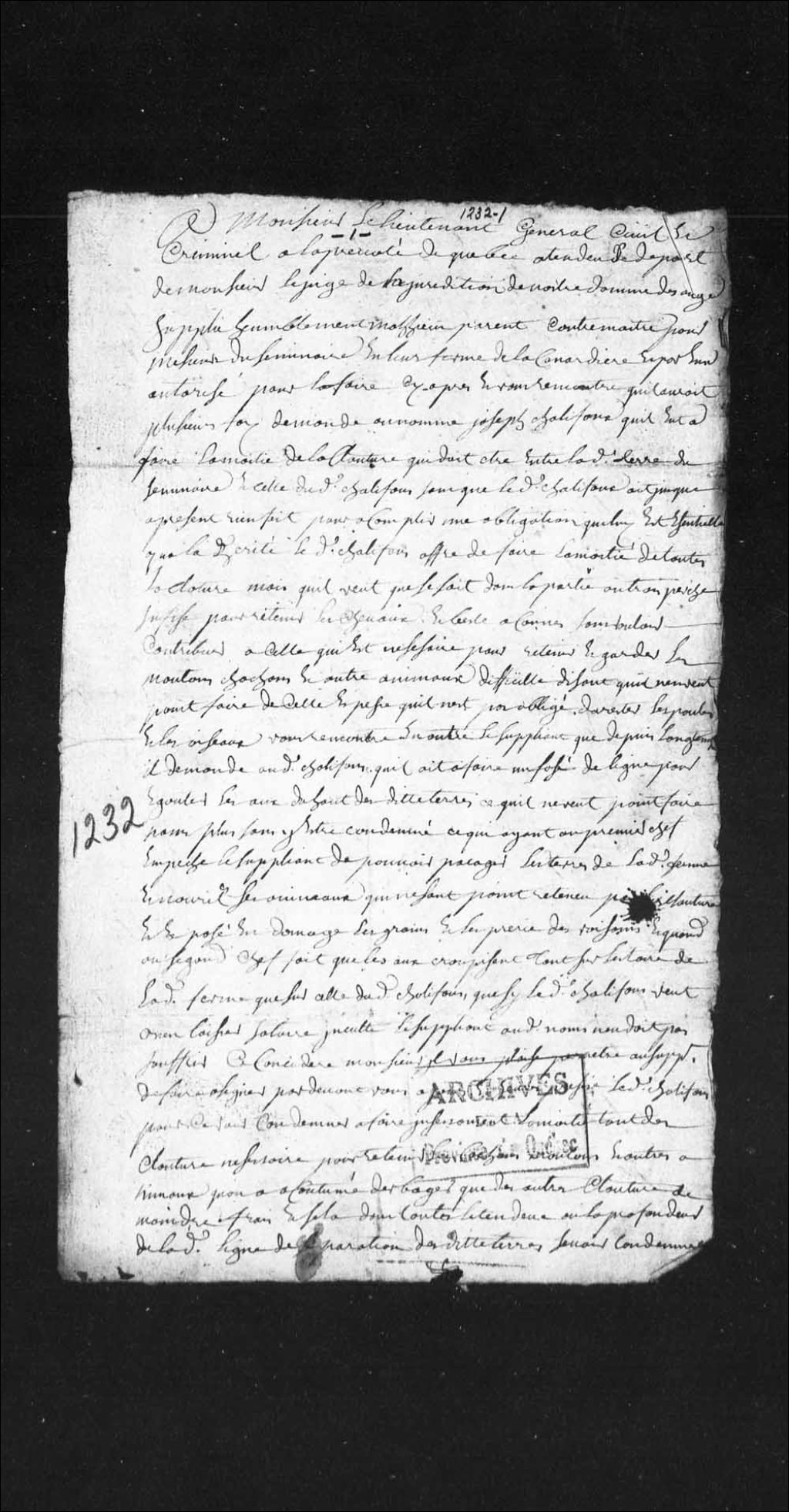 Procès opposant Joseph Chalifour, habitant de la Canardière, à Mathieu Parent, contremaître des fermes du Séminaire de Québec, concernant des clôtures