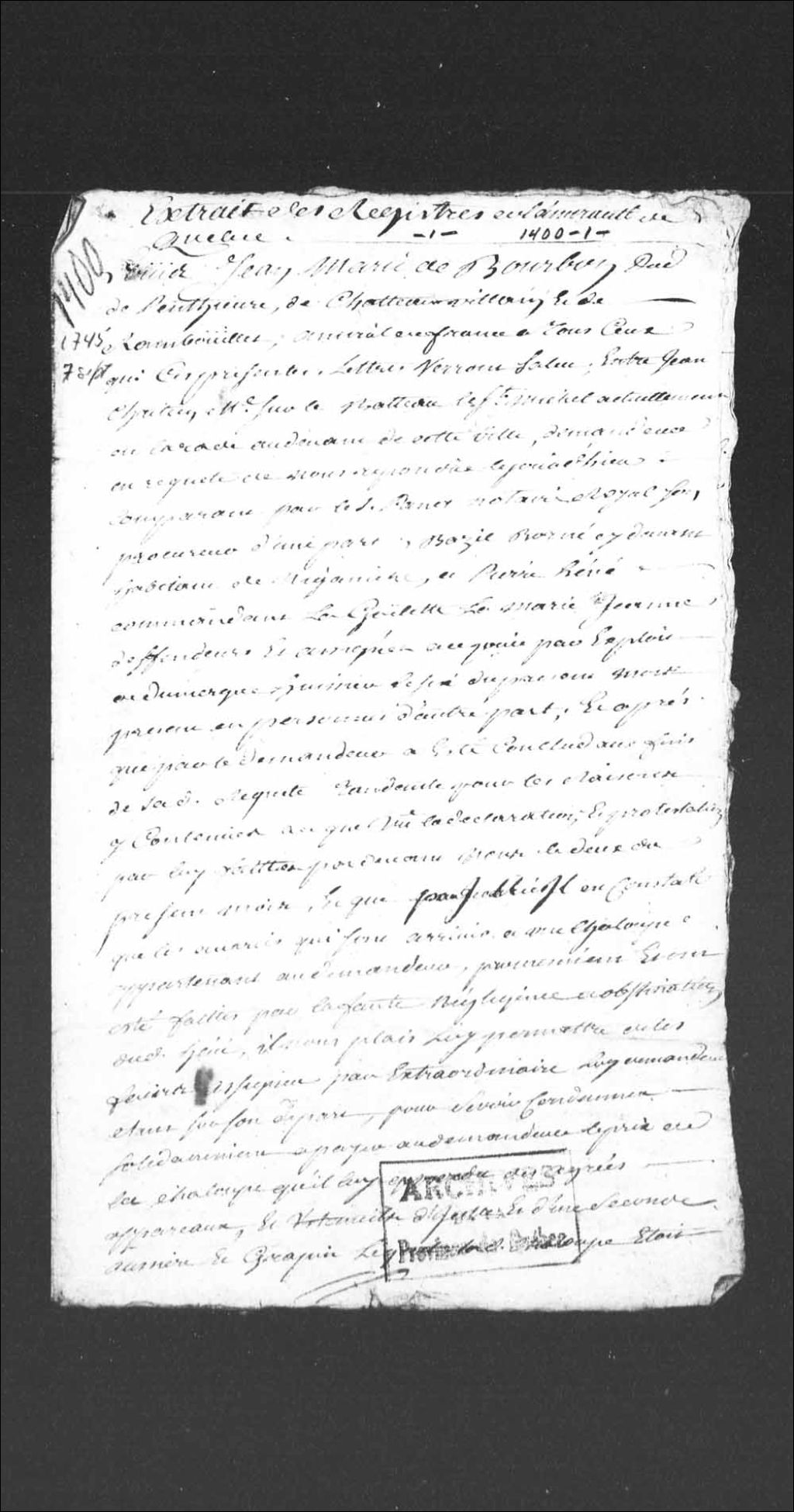 - Ce dossier en matières civiles provient de l'Amirauté de Québec et du Conseil supérieur de Québec. Il comprend des ordonnances rendues par l'Amirauté de Québec; les requêtes de Jean Chrétien adressées à l'Amirauté et au Conseil supérieur de Québec; les défenses de Jean Chrétien