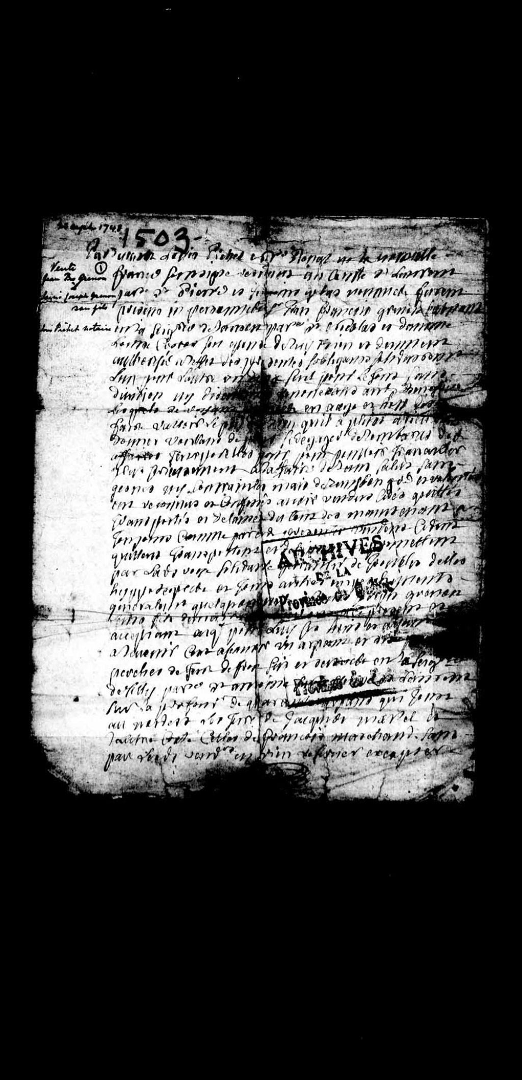 - Acte de Louis Pichet, notaire en l'île et comté de Saint-Laurent