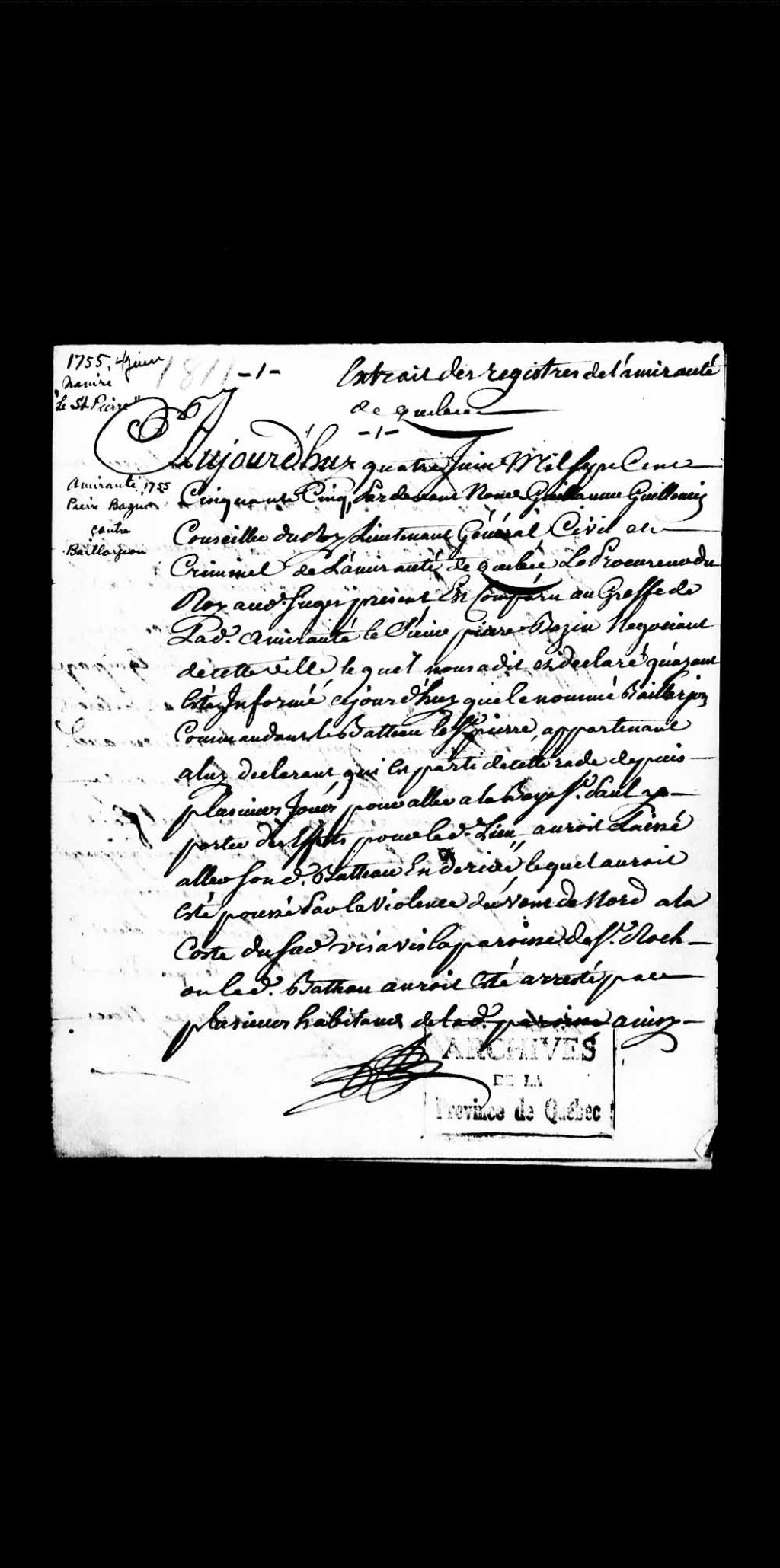 - Procès de Pierre Bazin, négociant, de Québec, contre le nommé Baillargeon, commandant du bateau «le Saint-Pierre»