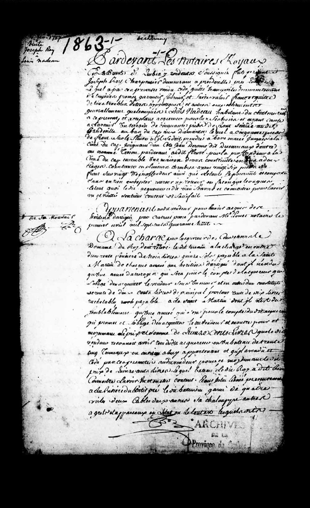 - Acte de Jean-Baptiste Decharnay, notaire