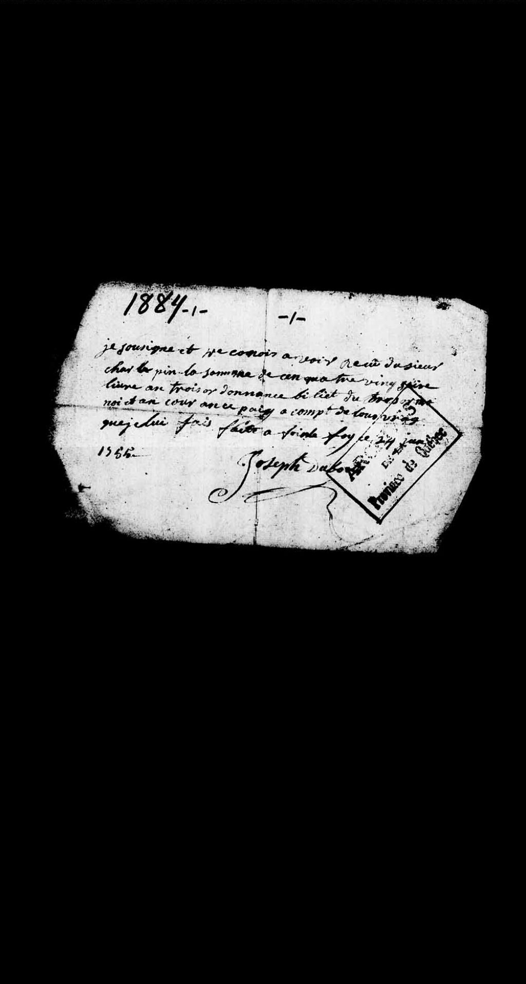 - Ce dossier en matières civiles provient de la Prévôté de Québec. Il comprend une reçu pour paiement par Charles Pin signé Joseph Dubot; un marché concernant la construction d'une maison entre Dubot et Charles Lépine, volontaire de Québec; ainsi qu'une requête adressée à monsieur le lieutenant général civil et criminel de la Prévôté de Québec par Pin afin de faire assigner Dubot