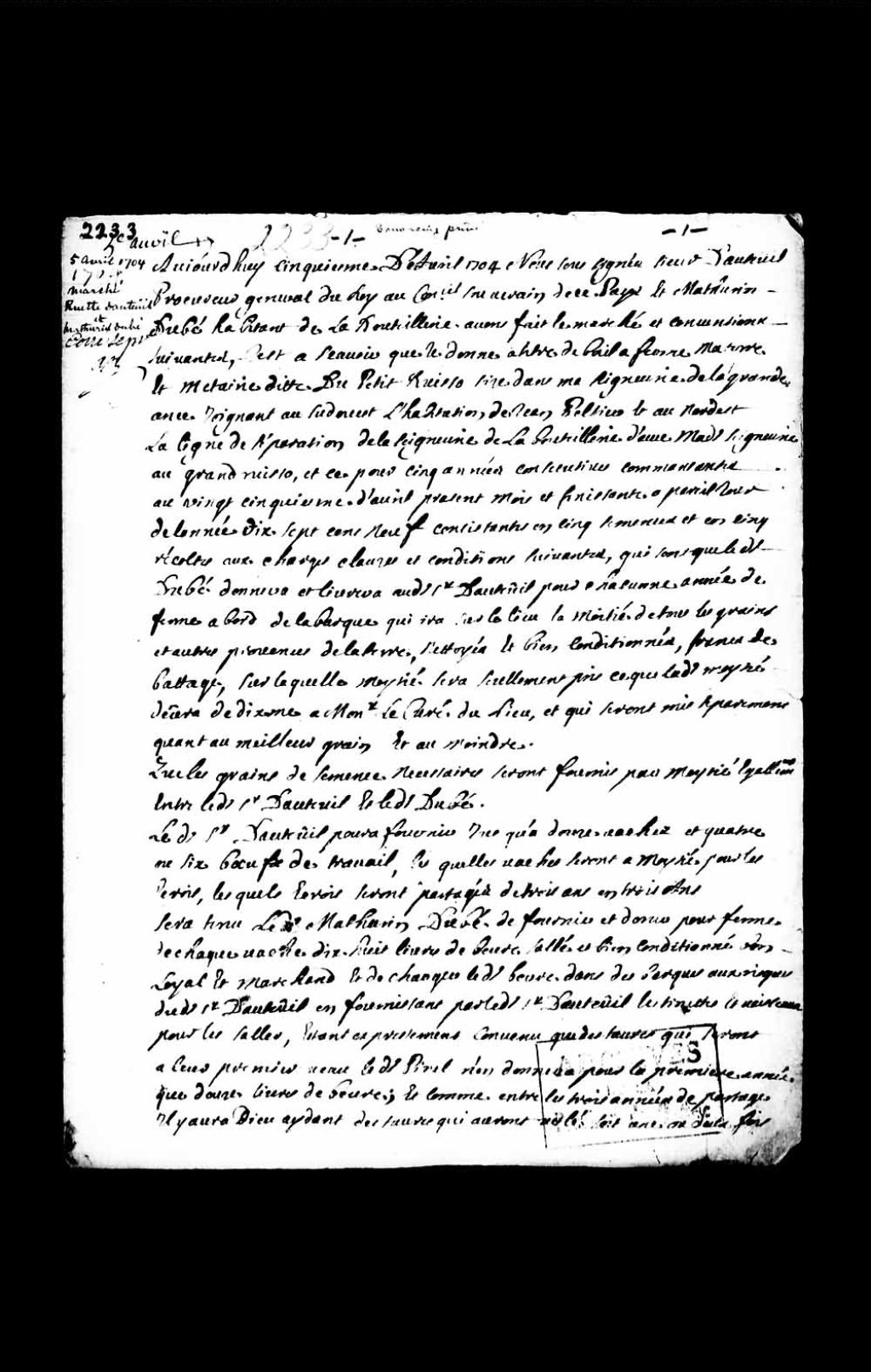 - 5 avril 1704