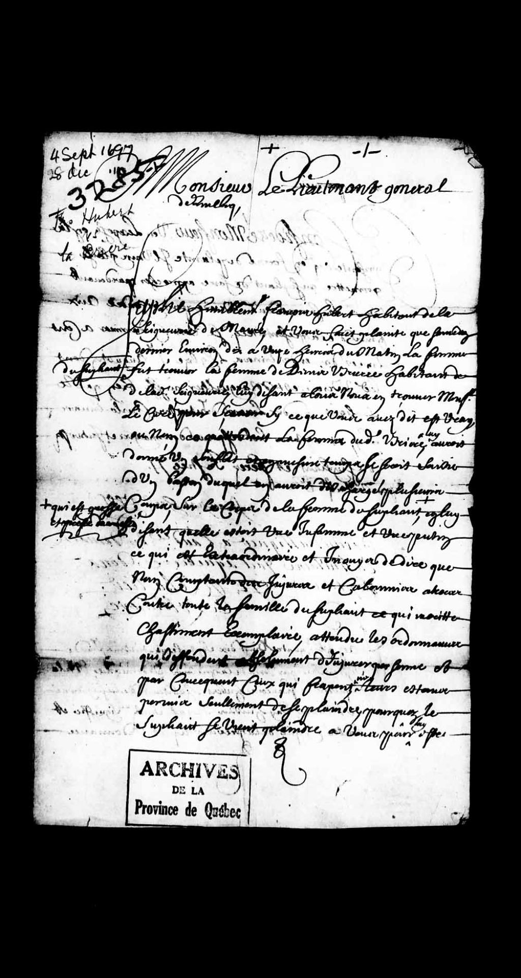 - Dossier en matières civiles reçu par la Prévôté de Québec