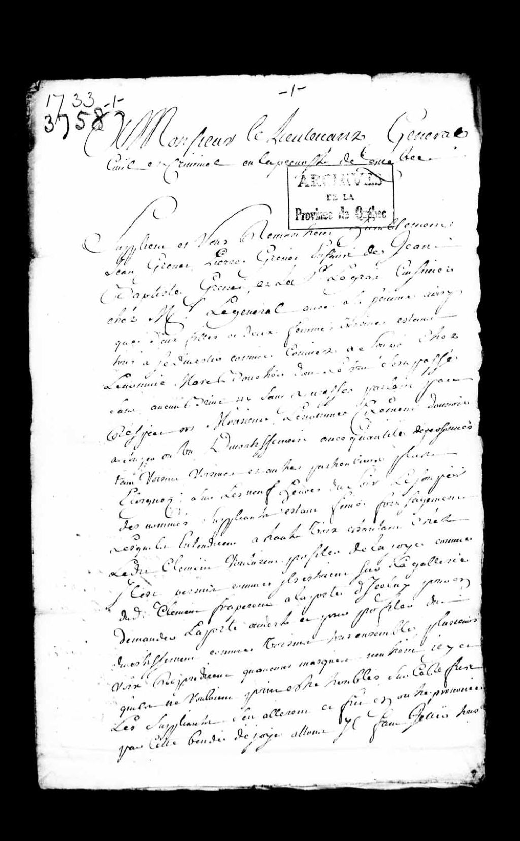 Requête de Jean Grenet et Pierre Grenet, enfants de Jean-Baptiste Grenet, Jean-Gabriel Legras, cuisinier, et sa femme, ainsi que deux filles et deux femmes voisines, tous convives du souper tenu en la maison du nommé Boucher, demandant la condamnation des sieurs Clément et Fortin à payer les dépens, dommages et intérêts, relatifs aux coups et blessures, notamment des morsures faites à Pierre Grenet, 9 janvier 1733, Archives nationales à Québec, Collection Pièces judiciaires et notariales, (03Q,TL5,D3758).