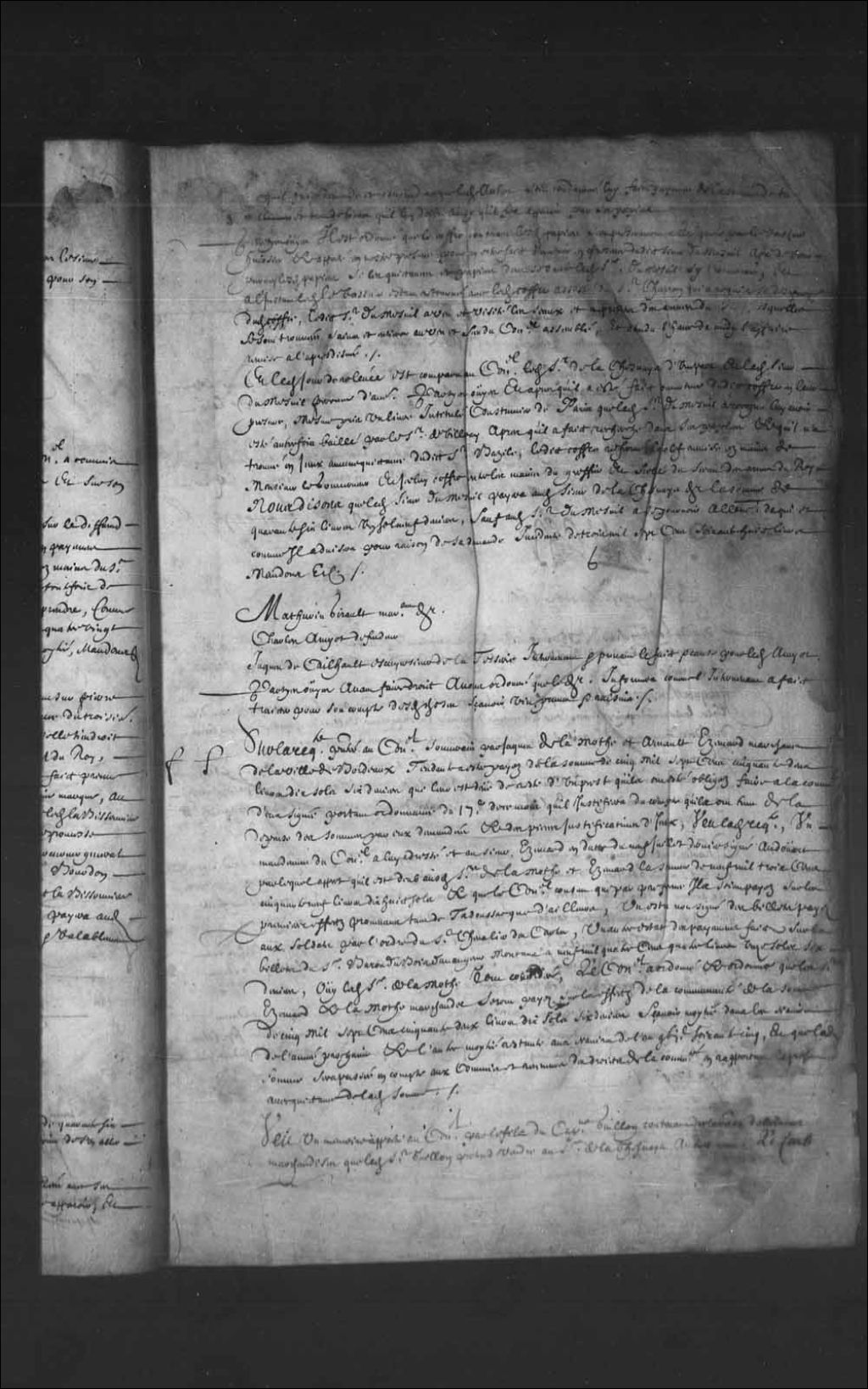 Arrêt portant que Mathurin Girault, marchand, fera preuve que Jacques de Cailhault (Descailhault), écuyer, sieur de la Tesserie, intervenant pour Charles Amiot, défendeur, a fait traite pour son compte de certaines marchandises (vin, prunes et raisins), 20 octobre 1663, Archives nationales à Québec, Fonds Conseil souverain, (03Q,TP1,S28,P1407).