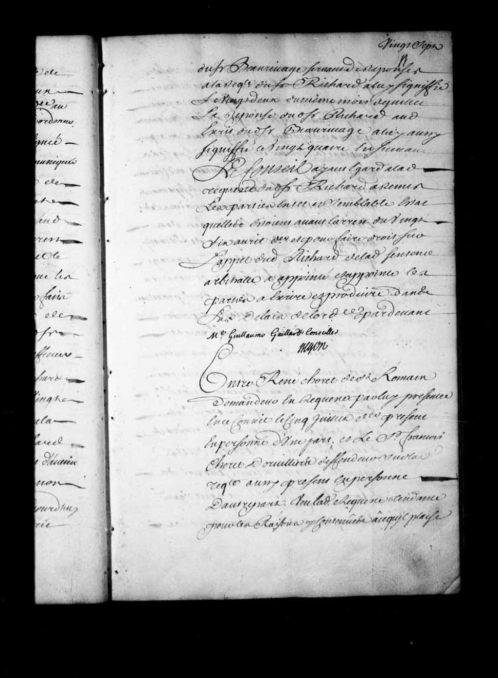 Arrêt qui accorde trois mois de délai à François Chorel Dorvilliers pour le paiement des sommes qu'il a été condamné de payer à René Chorel de Saint-Romain. Le délai expiré, le dit Dorvilliers sera tenu de payer en deniers comptants ou en immeubles de feu son père et sa mère suivant l'estimation qui en a été faite, 2 août 1723, Archives nationales à Québec, Fonds Conseil souverain, (03Q,TP1,S28,P15892).