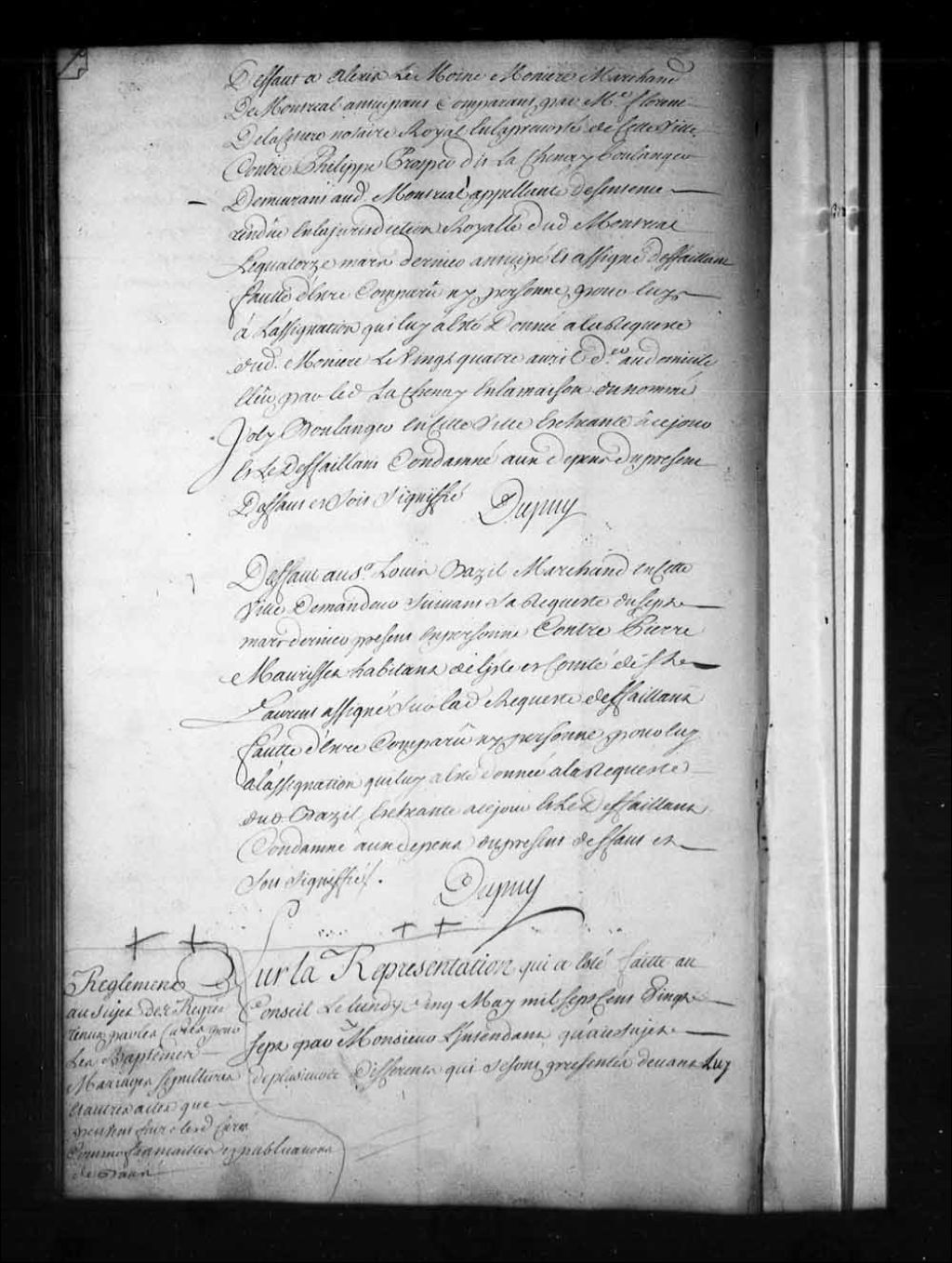 Défaut à Louis Bazil, marchand à Québec, contre Pierre Maurisset (Morisset), habitant de l'île et comté de Saint-Laurent, 5 mai 1727, Archives nationales à Québec, Fonds Conseil souverain, (03Q,TP1,S28,P16501).