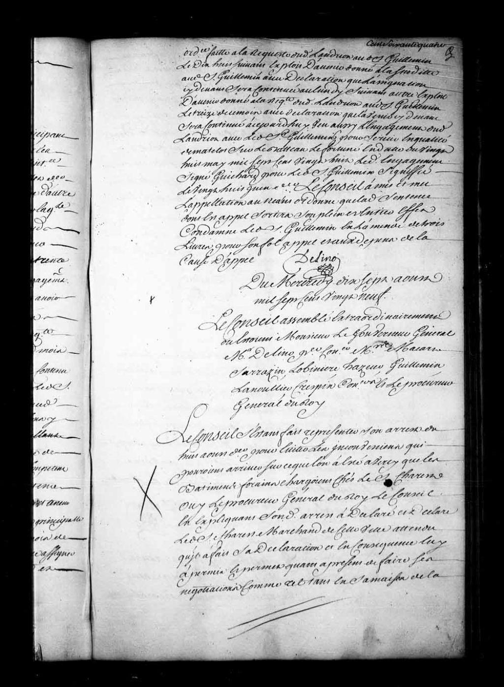 Arrêt qui permet au sieur Charest, marchand, attendu qu'il a fait sa déclaration, de faire ses négociations tant en sa maison de la Pointe-Lévis qu'en celle de Québec, en se conformant néanmoins à l'arrêt du 8 août 1729. Les habitants ne pourront toutefois se prévaloir de cette permission pour faire aucunes négociations, sous les peines portées par le dit arrêt, 17 août 1729, Archives nationales à Québec, Fonds Conseil souverain, (03Q,TP1,S28,P16906).