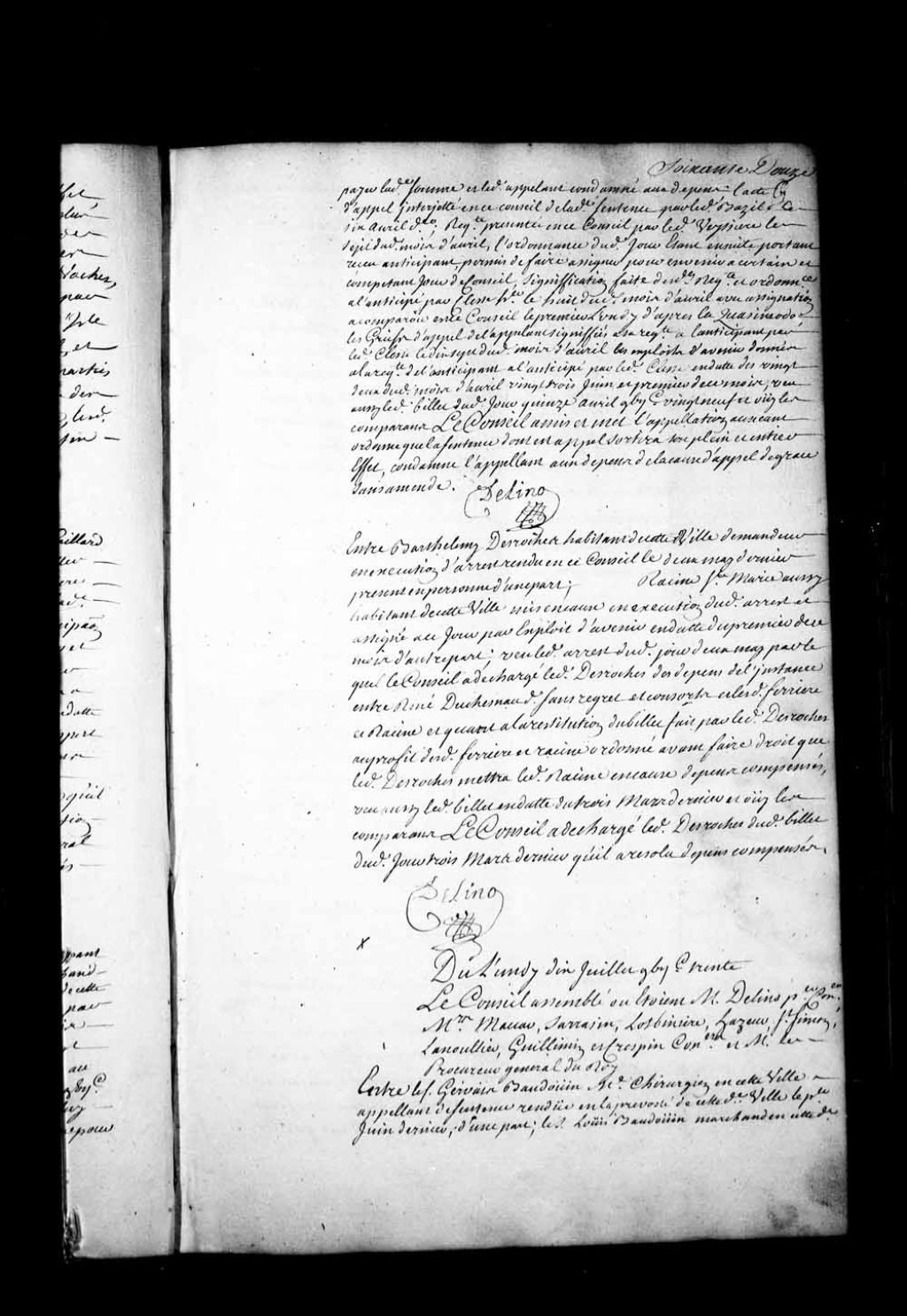 Arrêt qui décharge Barthélemy Desroches, habitant de Québec, demandeur en exécution d'arrêt du 2 mai 1730, d'un billet que lui réclame Racine Sainte-Marie (Ste-Marie)