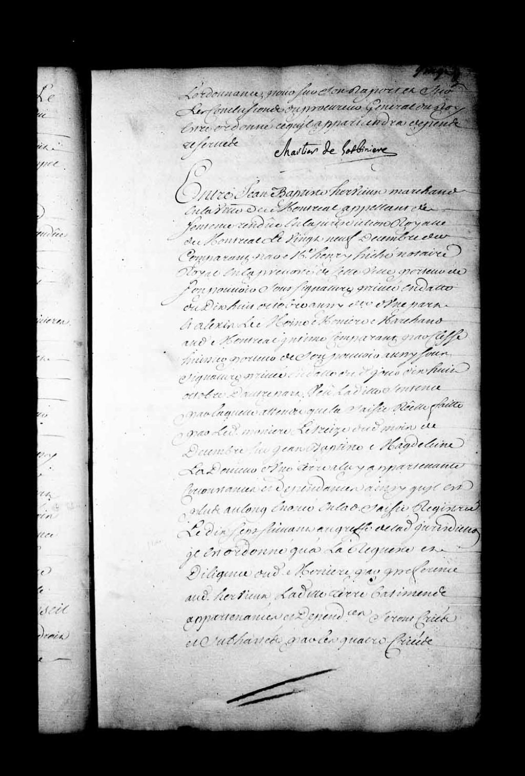 - Appel mis à néant de la sentence de la Juridiction de Montréal, le 29 décembre 1730, dans la cause entre Jean-Baptiste Hervieux, marchand à Montréal, et Alexis Lemoine Monière, aussi marchand à Montréal. Contestation au sujet d'une saisie réelle de 45 paquets de pelleterie