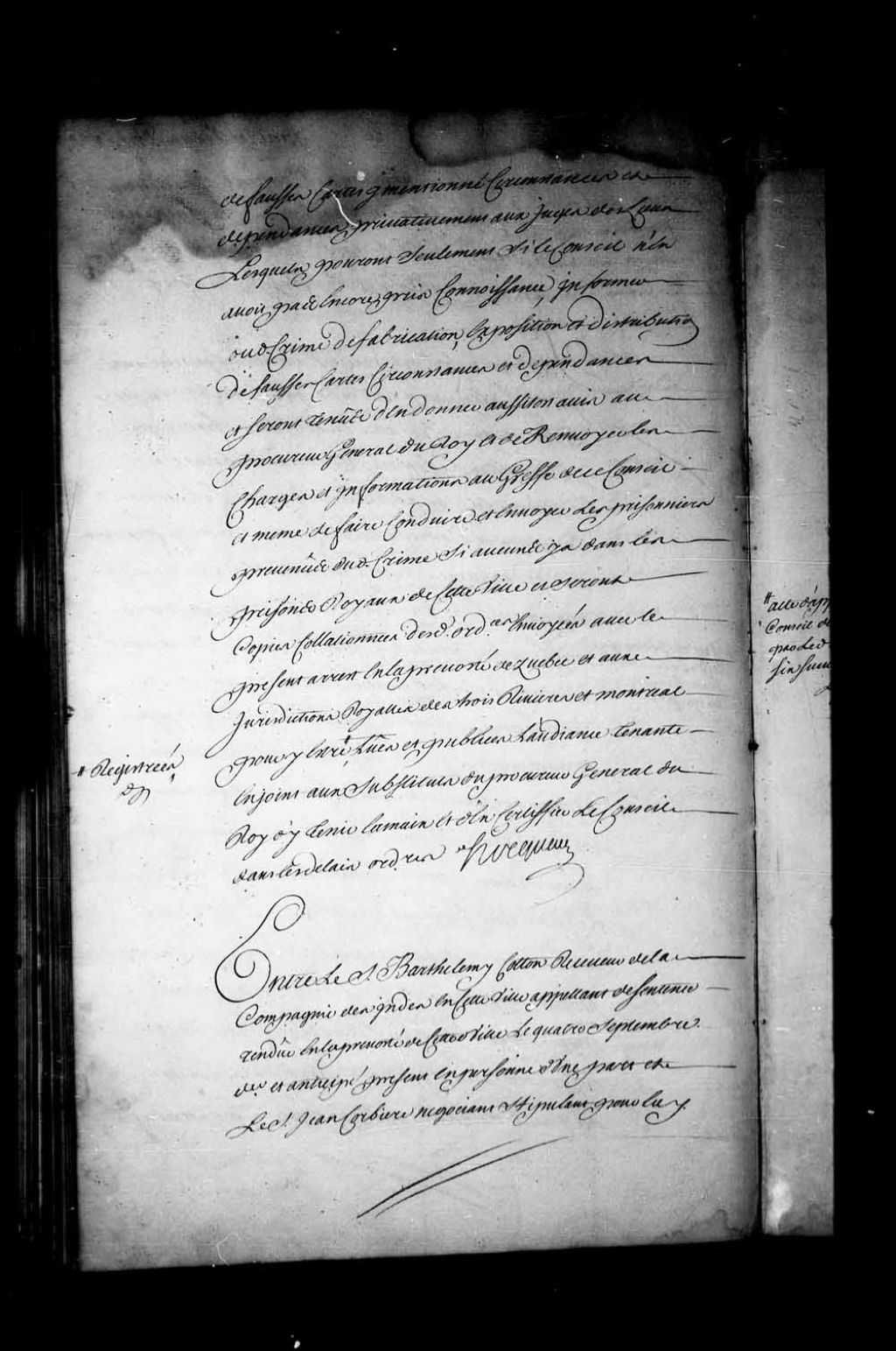 Appel mis à néant dans la cause entre Barthélemy Cotton, receveur de la Compagnie des Indes à Québec, (appelant de la sentence rendue en la Prévôté du 4 septembre dernier) contre Jean Corbière, négociant, stipulant pour lui le sieur Pierre Solomiac, 1 octobre 1736, Archives nationales à Québec, Fonds Conseil souverain, (03Q,TP1,S28,P18389).