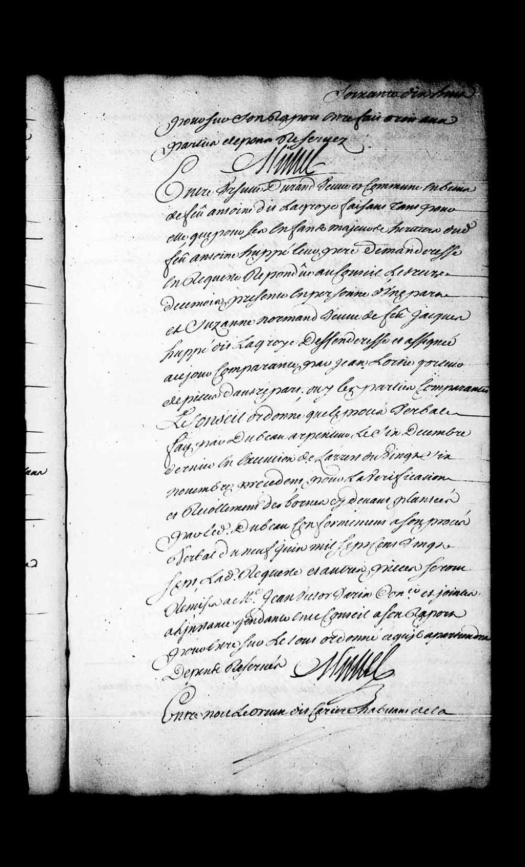 Arrêt qui appointe les parties en droit à écrire et produire, dans les délais de l'ordonnance, devant Thomas-Jacques Taschereau, conseiller, pour que dans son rapport et sur les conclusions du Procureur général du Roi, puise être ordonné ce que de raison dans la cause entre Noël Lebrun dit Carrière, habitant de la Durantaye, paroisse Saint-Vallier, appelant de la sentence rendue, le 18 mars 1737, contre Jean-Baptiste Roy, habitant du dit lieu de la Durantaye, 27 mai 1737, Archives nationales à Québec, Fonds Conseil souverain, (03Q,TP1,S28,P18495).