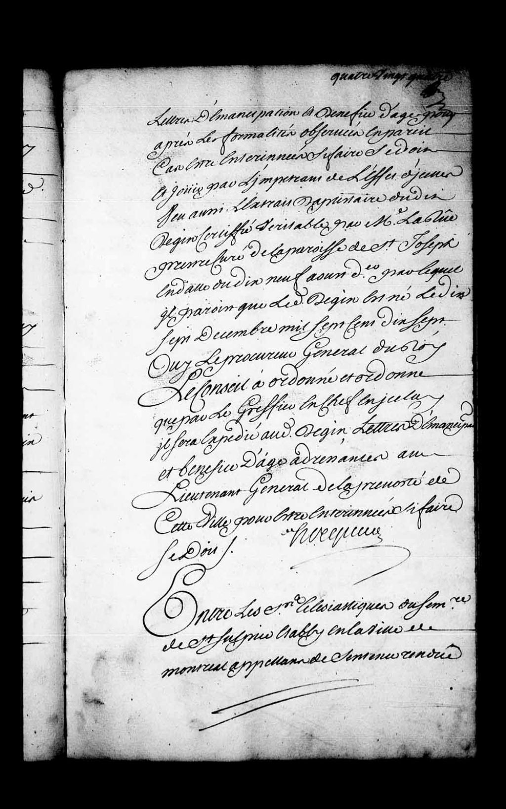 Arrêt qui ordonne que les pièces des parties seront remises à François Foucault, conseiller, pour en être délibéré dans la cause entre les sieurs Ecclésiastiques du Séminaire de Saint-Sulpice (St-Sulpice) de Montréal, appelants de la sentence rendue en la Juridiction de Montréal, le 25 septembre 1733, et Pierre Lestage, négociant à Montréal, 26 août 1737, Archives nationales à Québec, Fonds Conseil souverain, (03Q,TP1,S28,P18548).