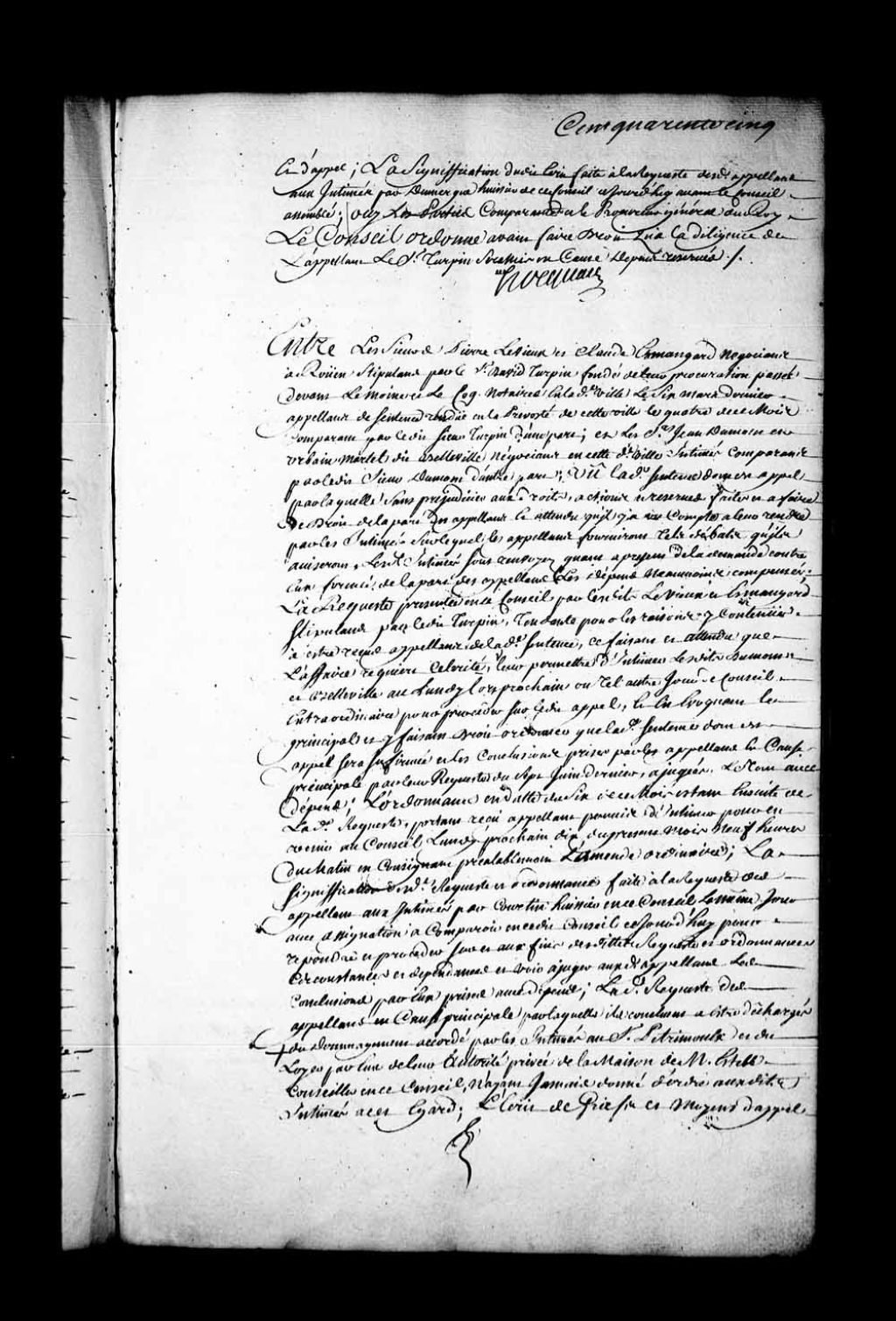 Appel mis à néant la sentence rendue en la Prévôté de Québec, le 4 juillet 1741, dans la cause entre les sieurs Pierre LeVieux et Claude Esmangard, négociants à Rouen, stipulant par David Turpin, contre les sieurs Jean Dumont et Urbain Martel dit Belleville, négociants à Québec. Évoquant le principal et y faisant droit, ordonne que la somme de 700 livres payée par les intimés au sieur Petrimoulx, pour dédommagement, leur sera allouée dans le compte qu'ils ont à rendre aux dits sieurs LeVieux et Esmangard, appelants, et que le bail à loyer fait par les dits intimés le 23 mai 1741, de la maison du sieur Estèbe, conseiller en ce Conseil, demeurera pour le compte et risque des dits appelants condamnés à l'amende et aux dépens des causes principale et d'appel