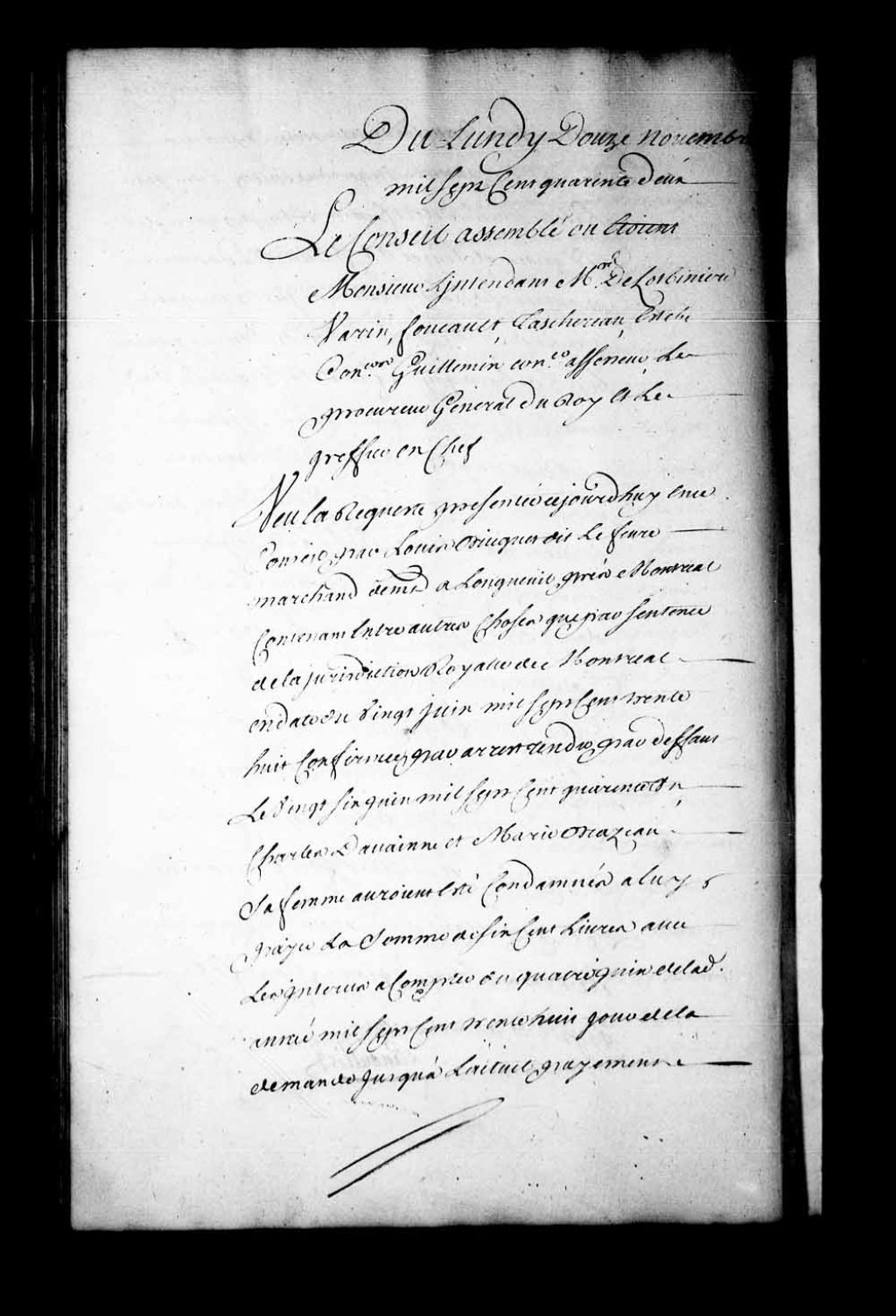Arrêt qui ordonne, avant de faire droit, que par deux experts il sera fait estimation des emplacements et portion de terre en contestation pour la dite estimation faite, en dresser procès-verbal et être ordonné ce qu'il appartiendra, dans la cause entre Louis Briquet dit Lefebvre, marchand demeurant à Longueuil, près de Montréal, contre Charles Davainne et Marie Brazeau, sa femme, 12 novembre 1742, Archives nationales à Québec, Fonds Conseil souverain, (03Q,TP1,S28,P19326).