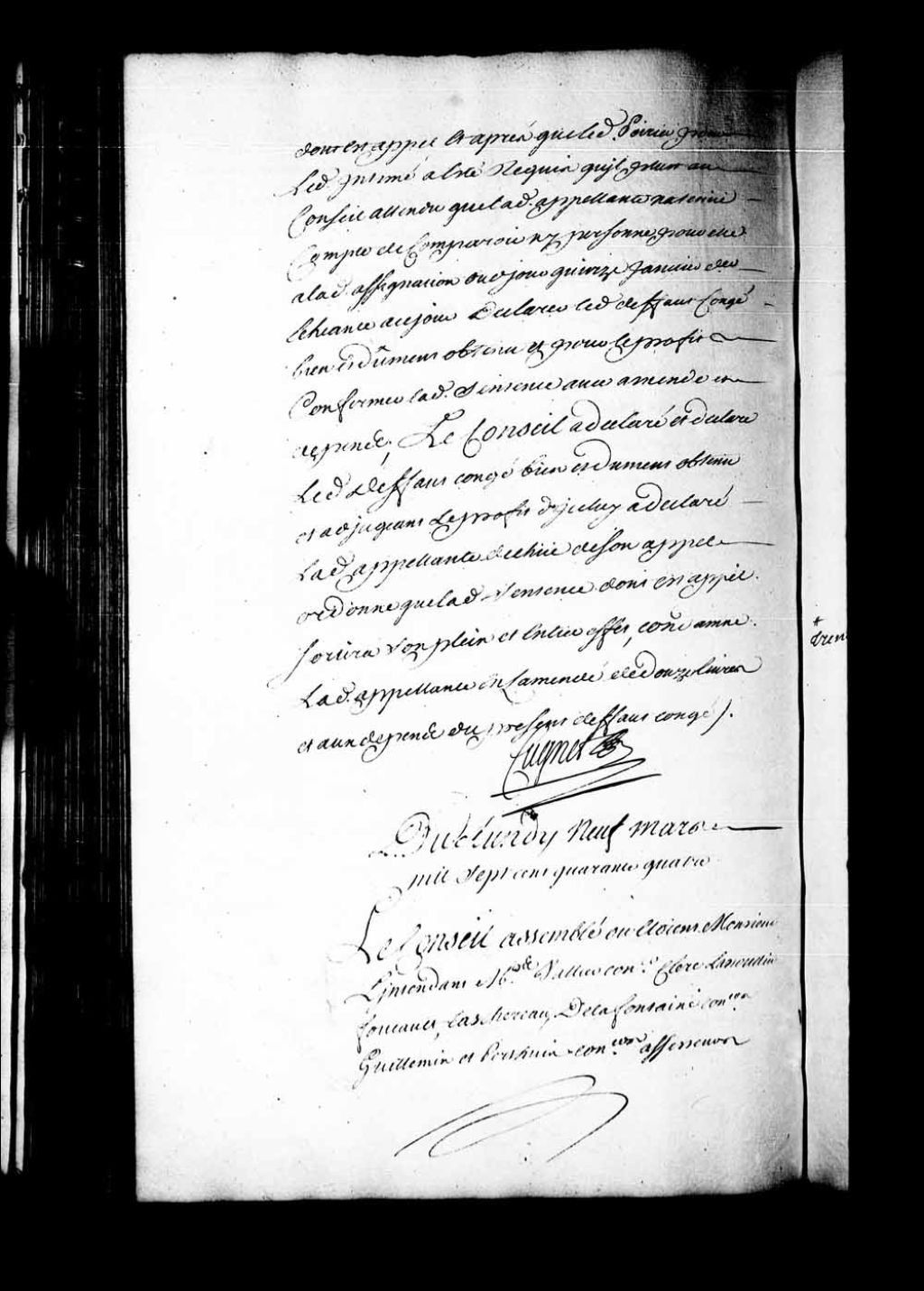 Arrêt qui, dans la cause entre Noël Langlois dit Traversy, habitant de la seigneurie de Saint-François-Xavier du lac Saint-Pierre, contre Jean-Baptiste Pepin, maçon demeurant ordinairement à la Baie-Saint-Antoine, ordonne, avant de faire droit, que par deux experts qui seront nommés d'office par le lieutenant général des Trois-Rivières, il sera fait estimation de la terre vendue par Langlois dit Traversy à Jean-Baptiste Pepin; de laquelle estimation il sera dressé procès-verbal pour que celui-ci fait et rapporté au Conseil puisse être ordonné ce qu'il appartiendra, 9 mars 1744, Archives nationales à Québec, Fonds Conseil souverain, (03Q,TP1,S28,P19563).