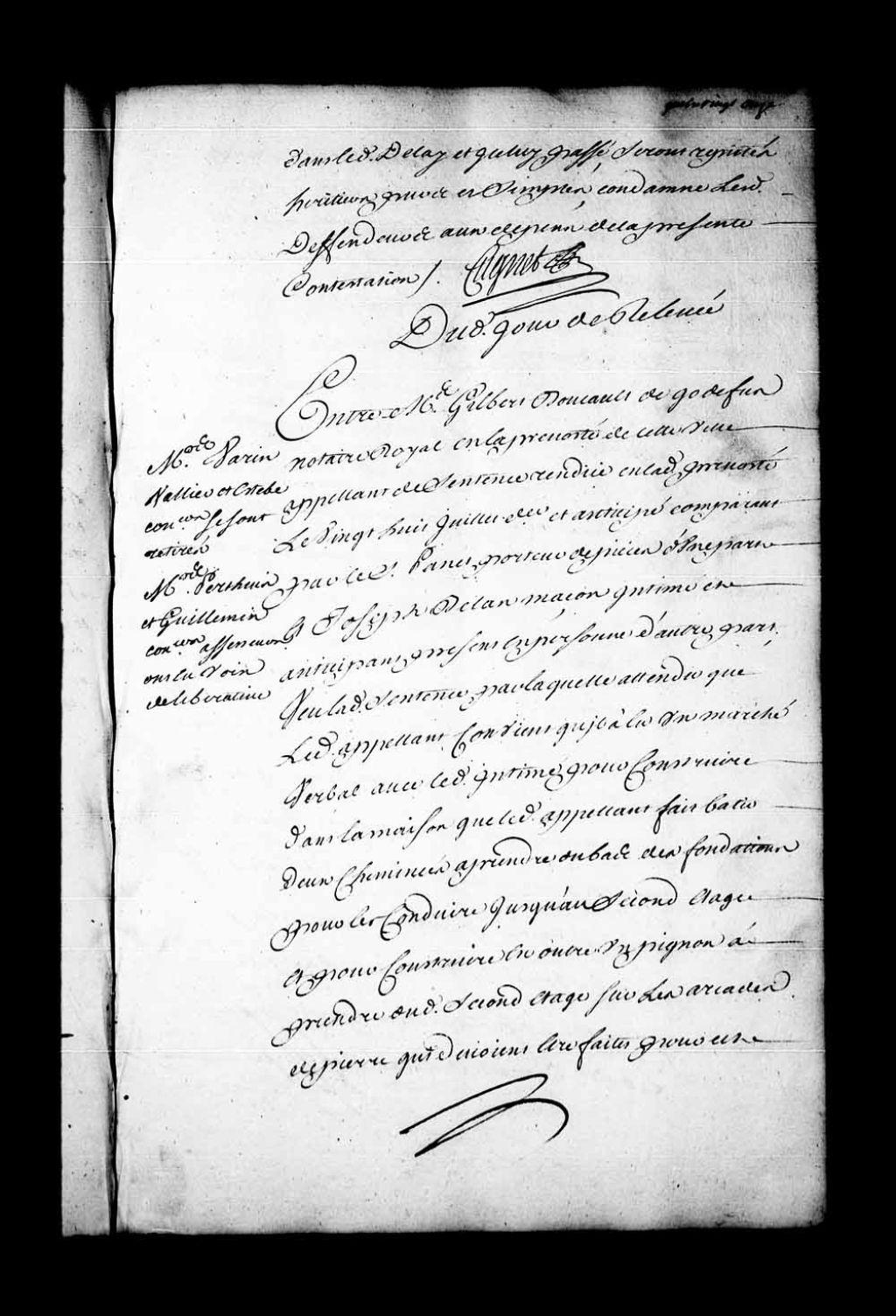 Appel mis à néant de la sentence rendue en la Prévôté de Québec, le 28 juillet 1744, dans la cause entre maître Gilbert Boucault de Godefus, notaire royal, contre Joseph Béland, maçon, intimé et anticipant. Gilbert Boucault de Godefus est condamné l'amende de 3 livres pour son «fol appel» et aux dépens de la cause d'appel, 11 août 1744, Archives nationales à Québec, Fonds Conseil souverain, (03Q,TP1,S28,P19636).