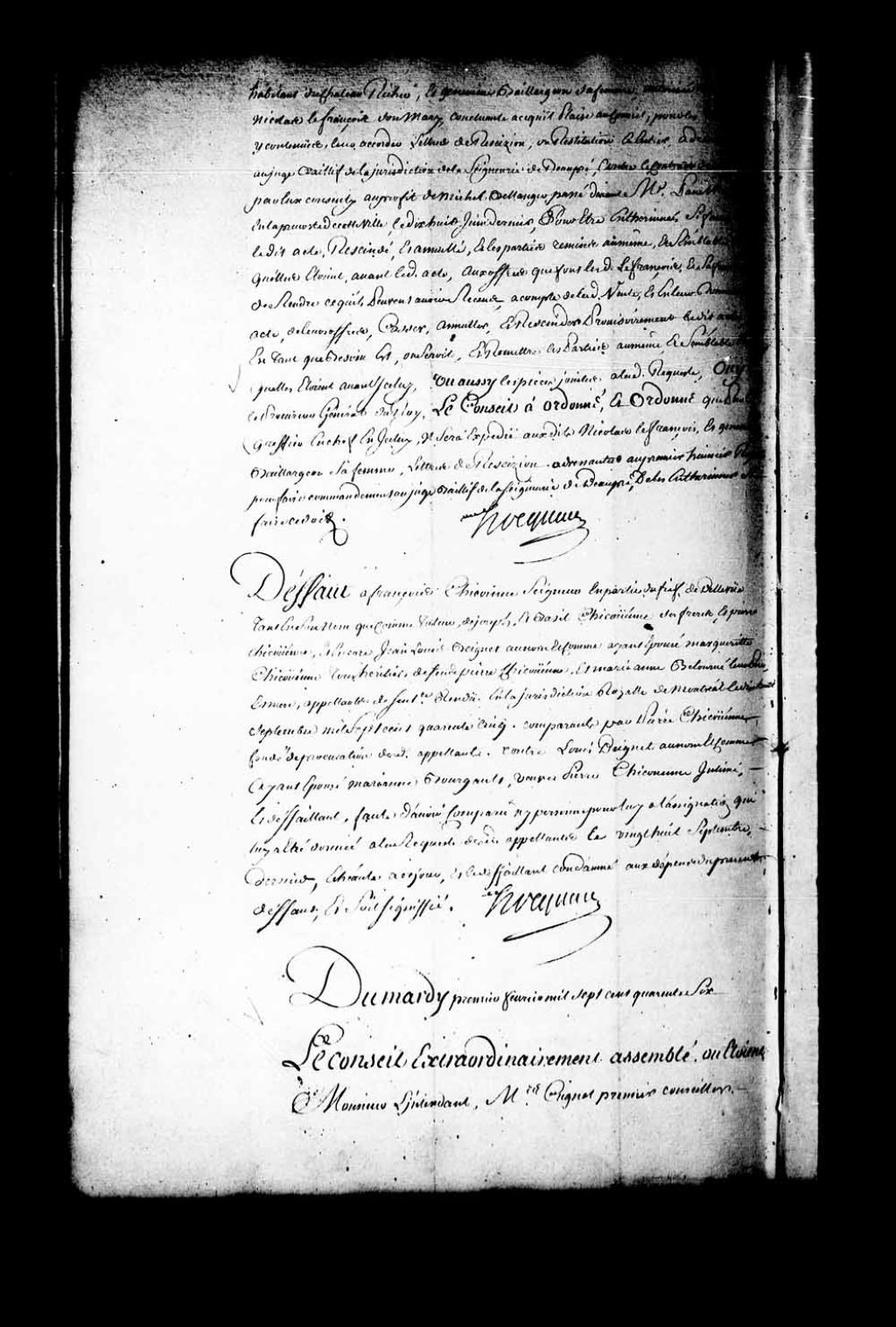 Appel mis à néant dans la cause entre Antoine Juchereau Duchesnay, seigneur de Beauport, opposant sur les deniers provenant de la vente et adjudication faite à lui du quart par indivis de la seigneurie de Beauport, appelant de la sentence rendue en la Prévôté de Québec, le 31 mai 1745, contre Laurent Normandin, de Québec, poursuivant les criées, vente et adjudication de la dite seigneurie, au nom de créancier de feu Joseph Juchereau, étant aux droits du nommé Poirier, maître cordier, opposant, intimé et anticipant. Il est ordonné que ce qui est en appel sortira son plein et entier effet, et faisant droit sur la demande incidente de l'intimé, a déclaré nulle et de nul effet à son égard, l'obligation du 5 février 1740. Antoine Juchereau Duchesnay est condamné aux dépens de la cause d'appel