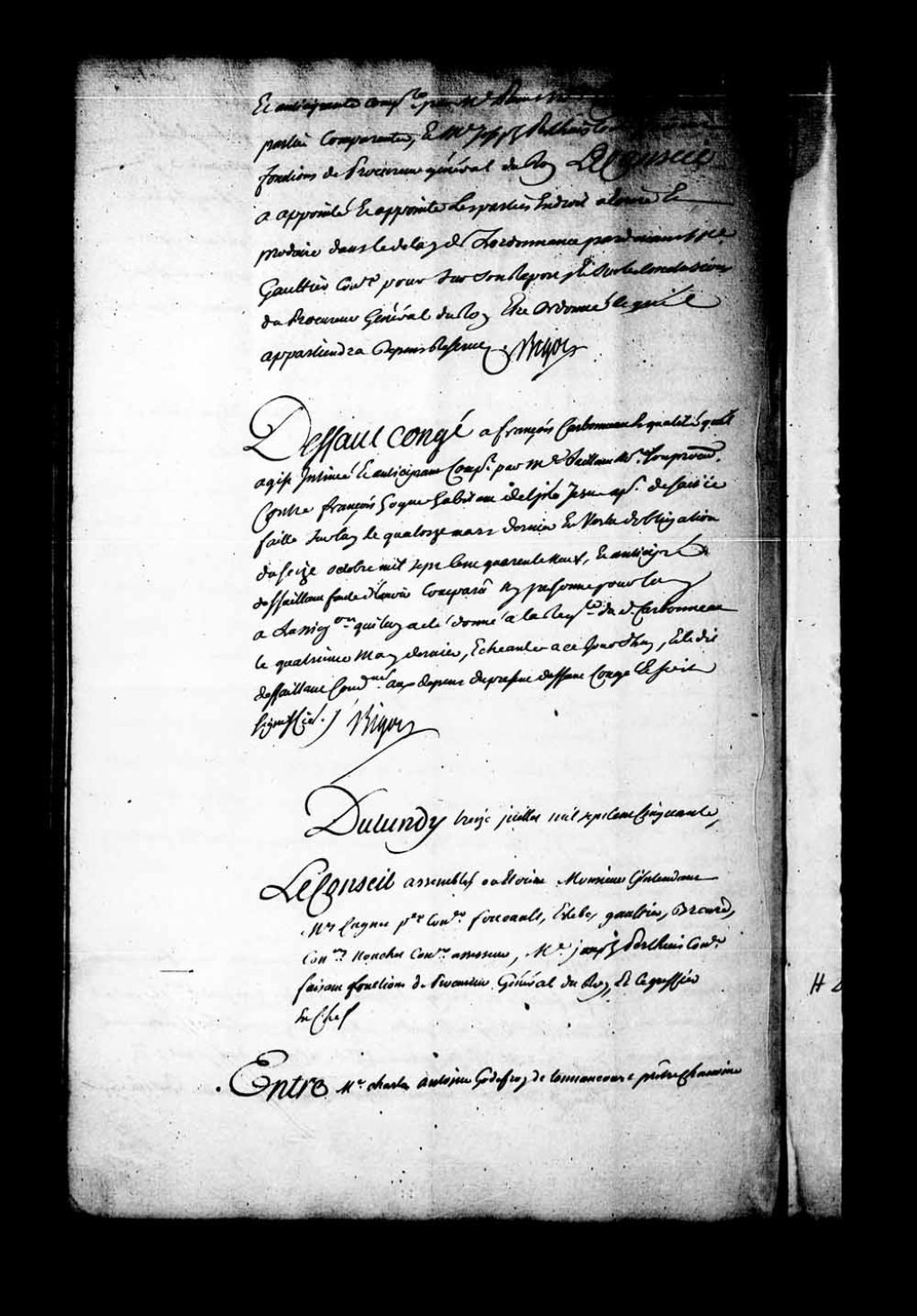 Arrêt qui accorde aux messieurs du Séminaire de Québec six semaines de délai pour répondre aux demandes formées contre eux par maître Antoine Godefroy de Tonnancour, chanoine de l'église cathédrale de Québec, syndic du chapitre de Québec, faisant tant pour lui que pour le dit chapitre