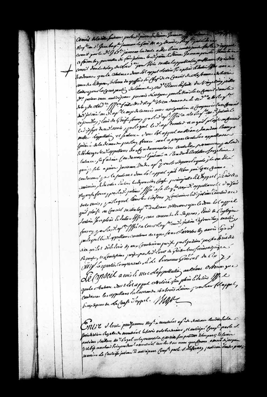 Appel mis à néant de la sentence rendue en la Juridiction de Montréal, le 3 octobre 1752, dans la cause entre Louis Prud'homme, négociant à Montréal, contre Louis Urtebise, marchand voyageur demeurant à Montréal, tant en son nom que comme associé de Jacques Maurice Lafantaisie. Prud'homme est condamné à l'amende de 3 livres pour son «fol appel» et aux dépens de la cause d'appel, 20 novembre 1752, Archives nationales à Québec, Fonds Conseil souverain, (03Q,TP1,S28,P20834).