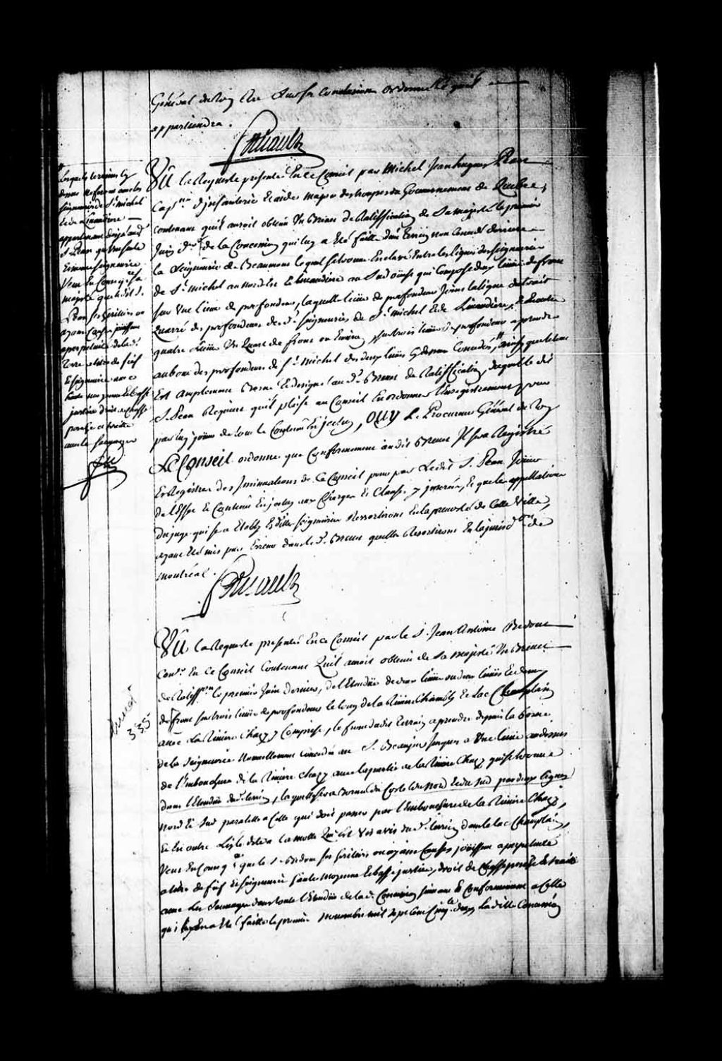 Arrêt qui ordonne l'enregistrement du brevet de ratification obtenu de Sa Majesté, le 1er juin 1753, d'une concession d'un terrain non concédé en arrière de la seigneurie de Beaumont, par Michel-Jean-Hugues Péan, capitaine dans les troupes et aide-major des troupes du Gouvernement de Québec