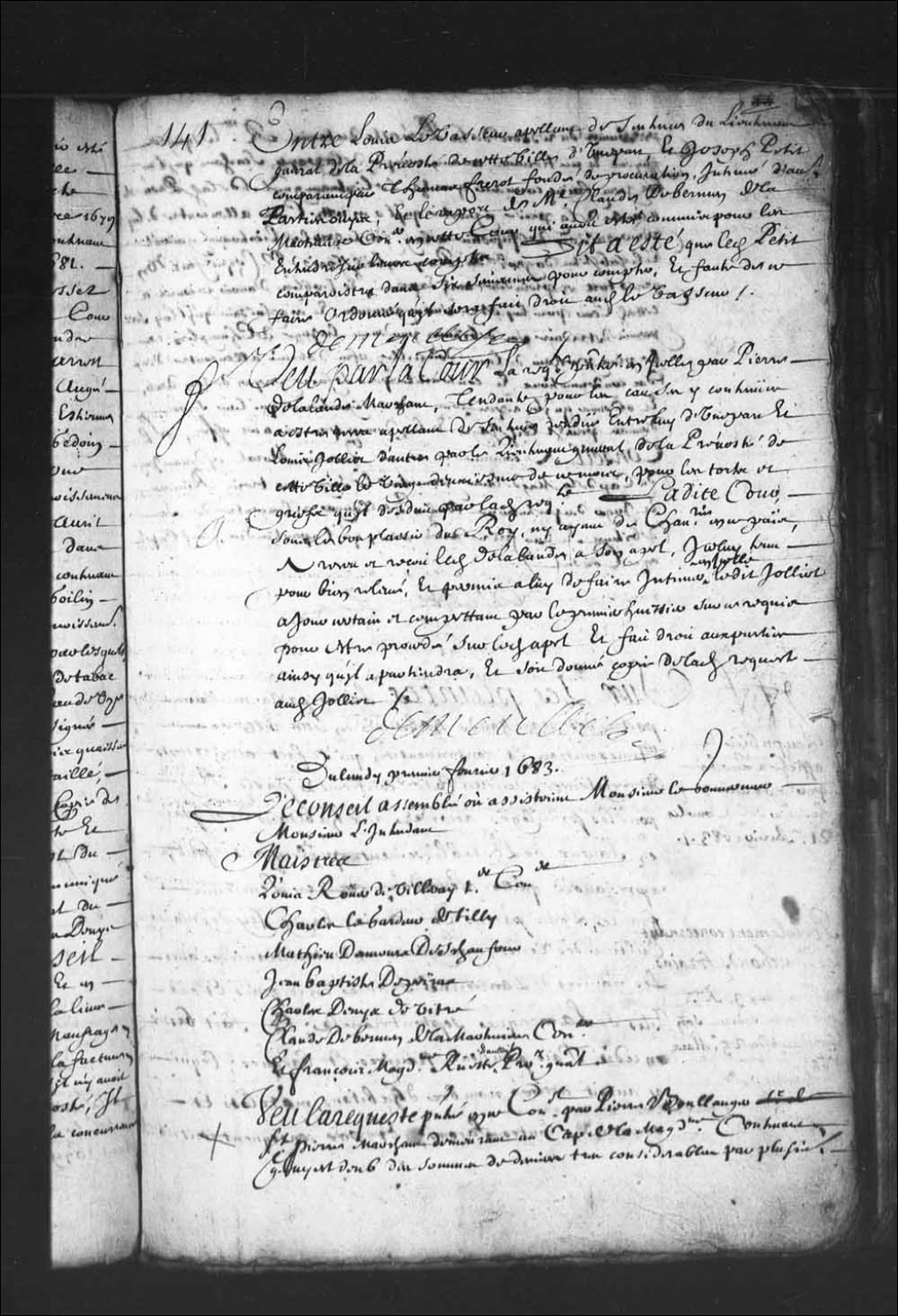 Réception en appel de Pierre de Lalande, marchand, contre Louis Jolliet, bourgeois de Québec, en vertu d'une sentence rendue par le lieutenant général de la Prévôté de Québec le 22 janvier 1683, 25 janvier 1683, Archives nationales à Québec, Fonds Conseil souverain, (03Q,TP1,S28,P3217).