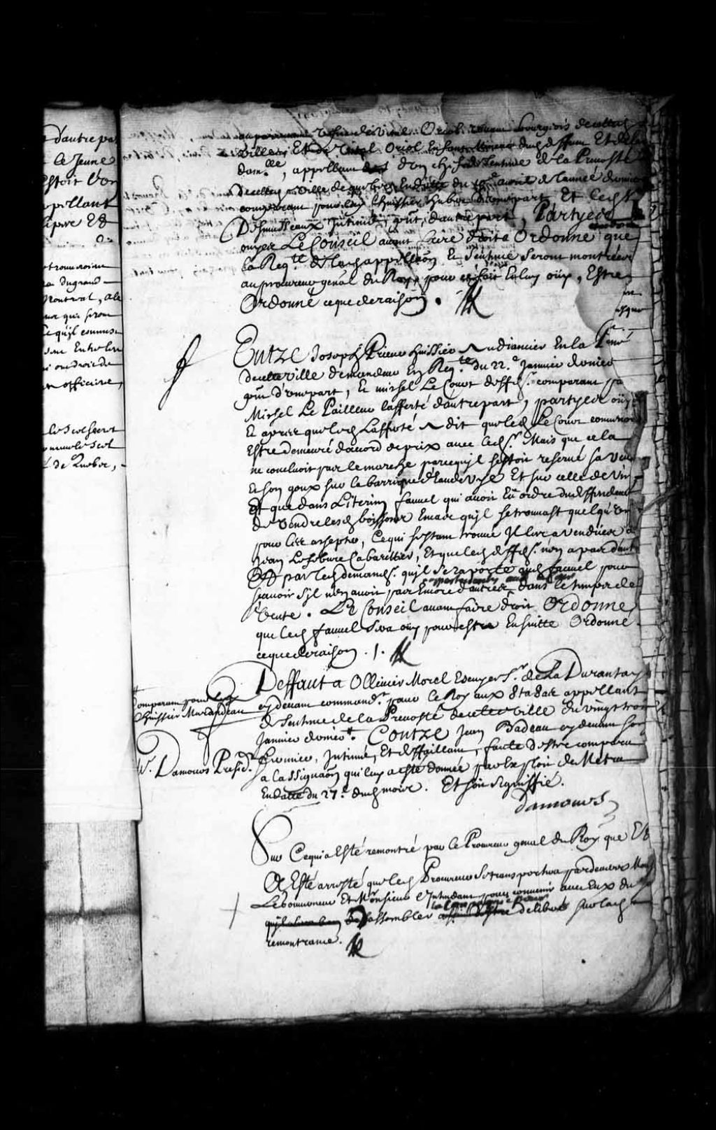 Ordre, dans la cause de Joseph Prieur, huissier et audiencier de Québec, contre Michel Lecours comparant par Michel LePailleur Laferté, d'entendre un certain Fauvel comme témoin, 5 février 1691, Archives nationales à Québec, Fonds Conseil souverain, (03Q,TP1,S28,P4489).