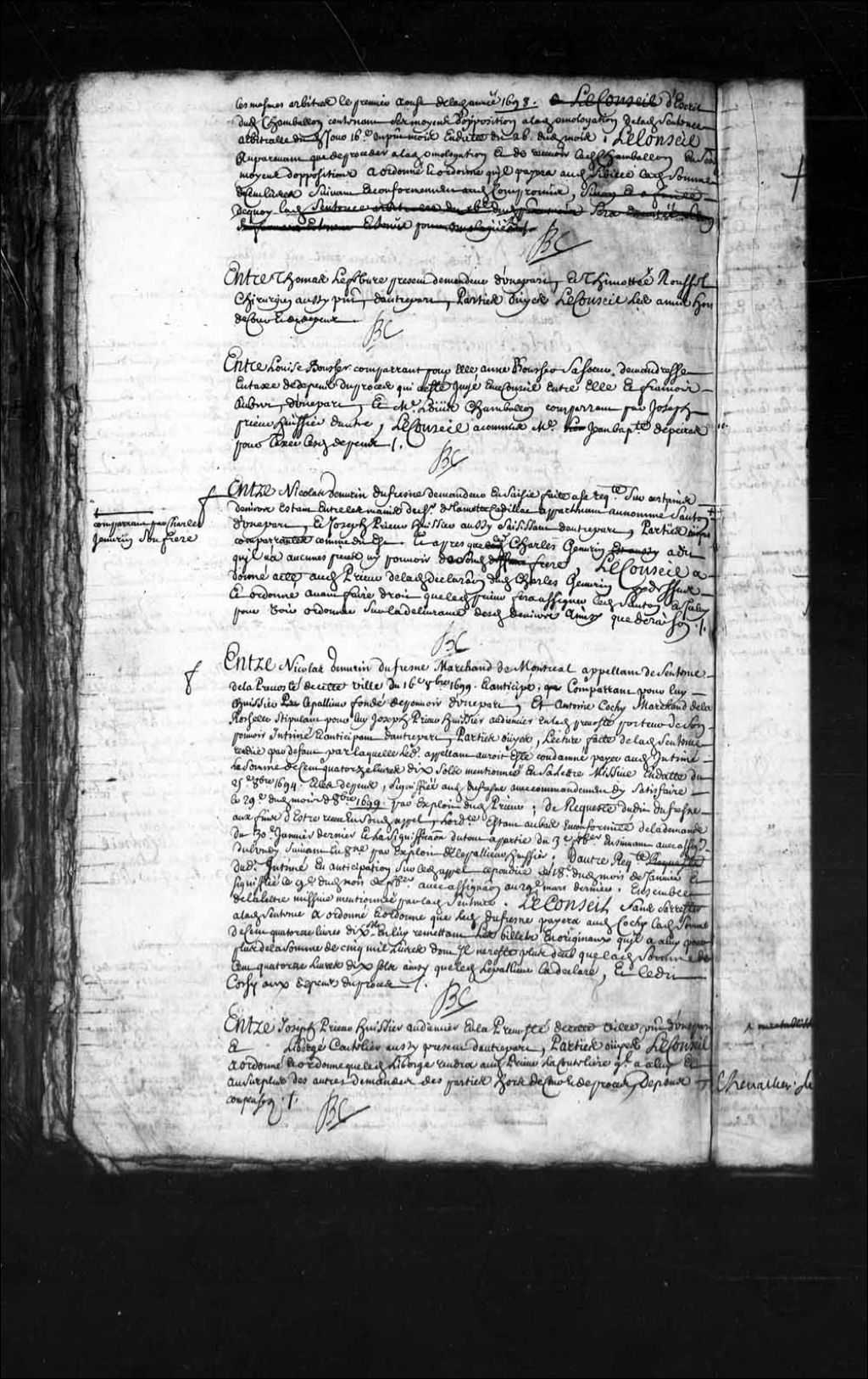 Commission à maître Jean-Baptiste de Peiras pour taxer certains dépens d'un procès qui a été jugé par ce Conseil, entre Louise Boucher et François Aubert, 26 avril 1700, Archives nationales à Québec, Fonds Conseil souverain, (03Q,TP1,S28,P5451).