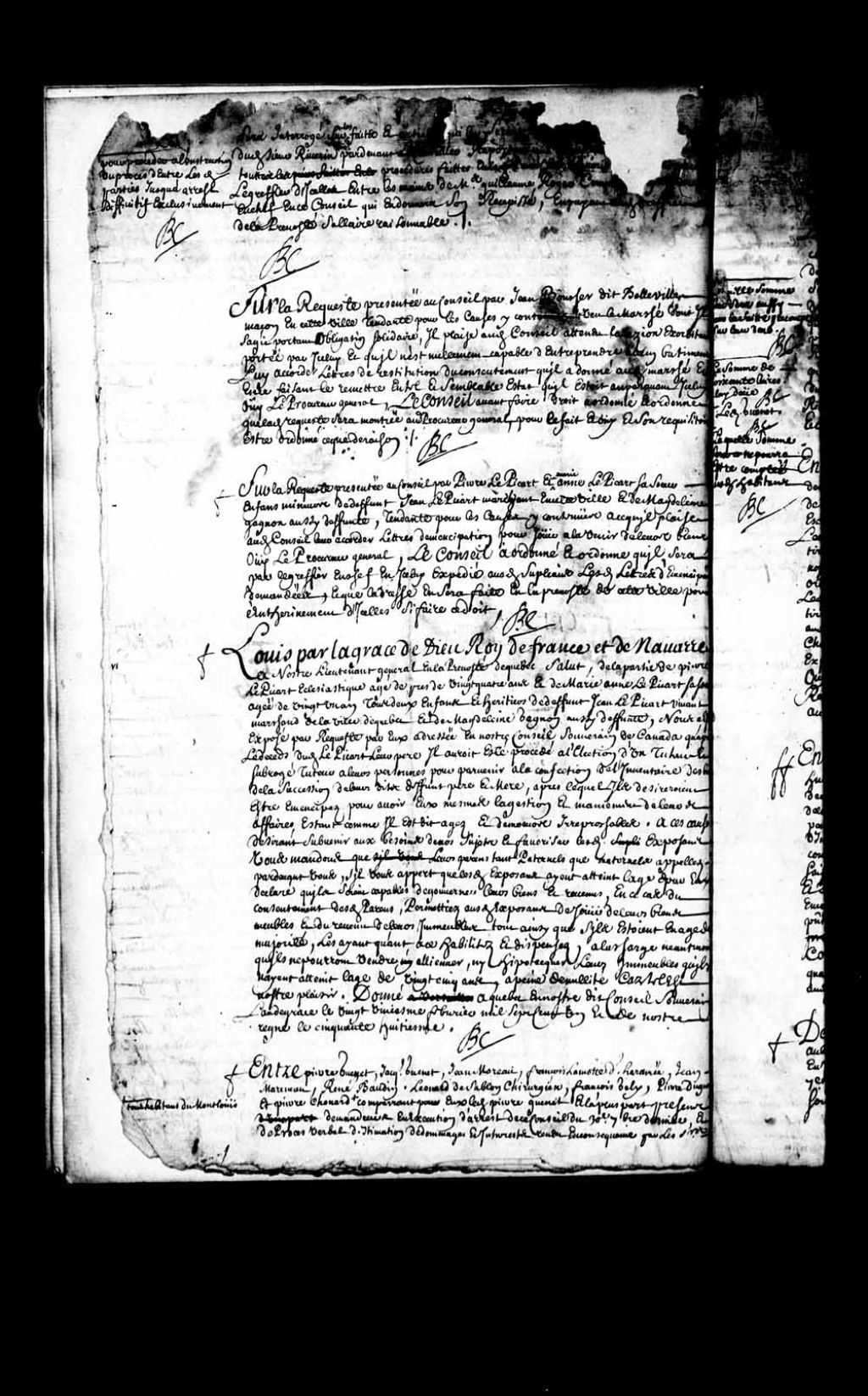 Ordre d'expédier à Pierre Picard (Lepicard), ecclésiastique, et à Marie-Anne Picard, sa soeur, tous deux enfants des défunts Jean Picard, marchand de Québec, et de Madeleine Gagnon, des lettres d'émancipation, 21 février 1701, Archives nationales à Québec, Fonds Conseil souverain, (03Q,TP1,S28,P7471).