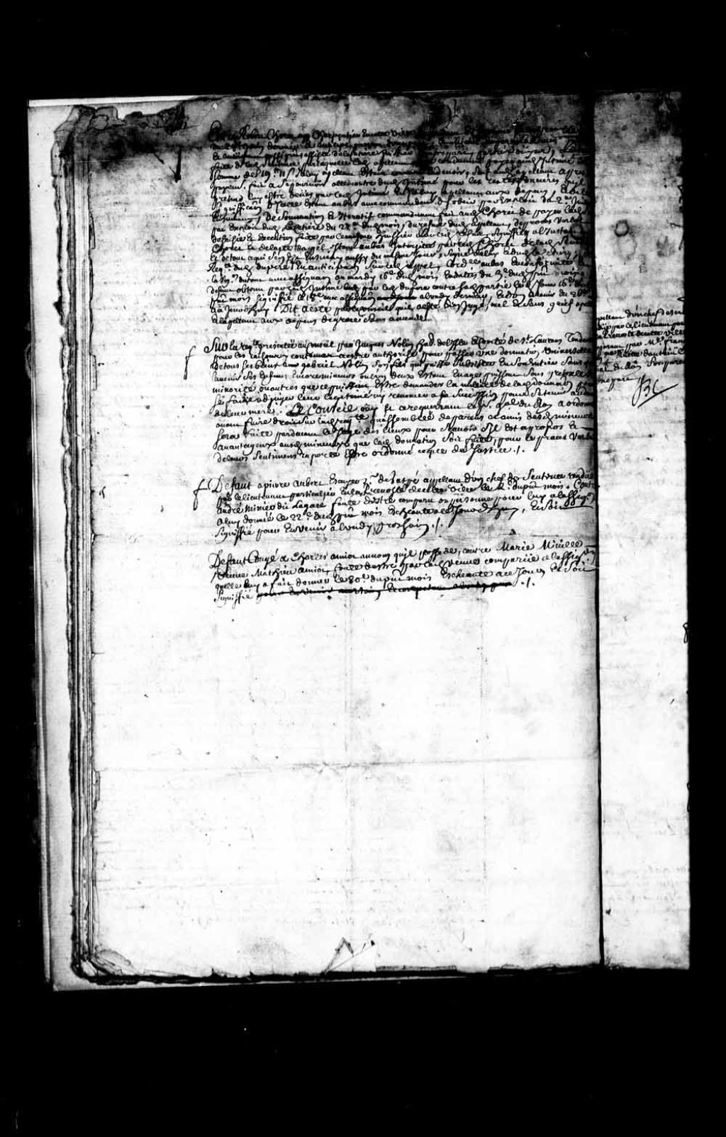 Défaut-congé accordé à Charles Amiot, contre Marie Miville, porté au plumitif, 29 août 1701, Archives nationales à Québec, Fonds Conseil souverain, (03Q,TP1,S28,P7565).
