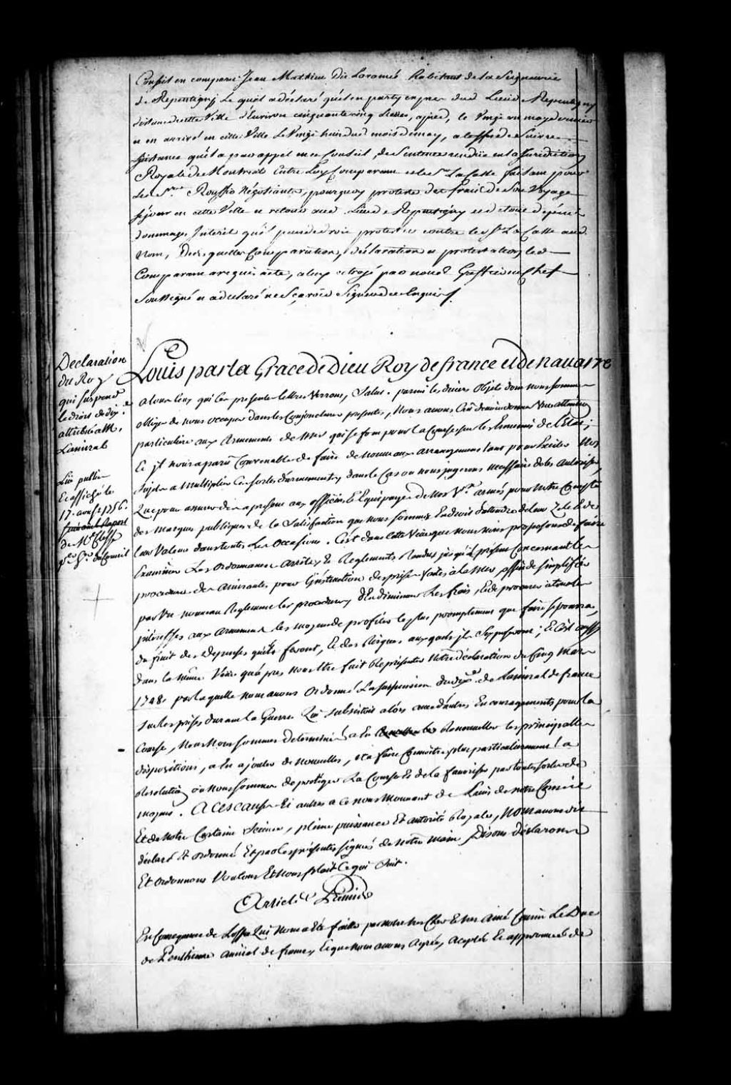Déclaration du Roi suspendant le droit du dixième attribué à l'amiral de France