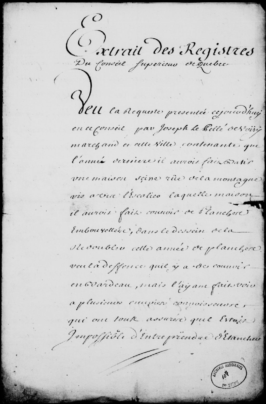 Extrait des registres du Conseil supérieur de Québec