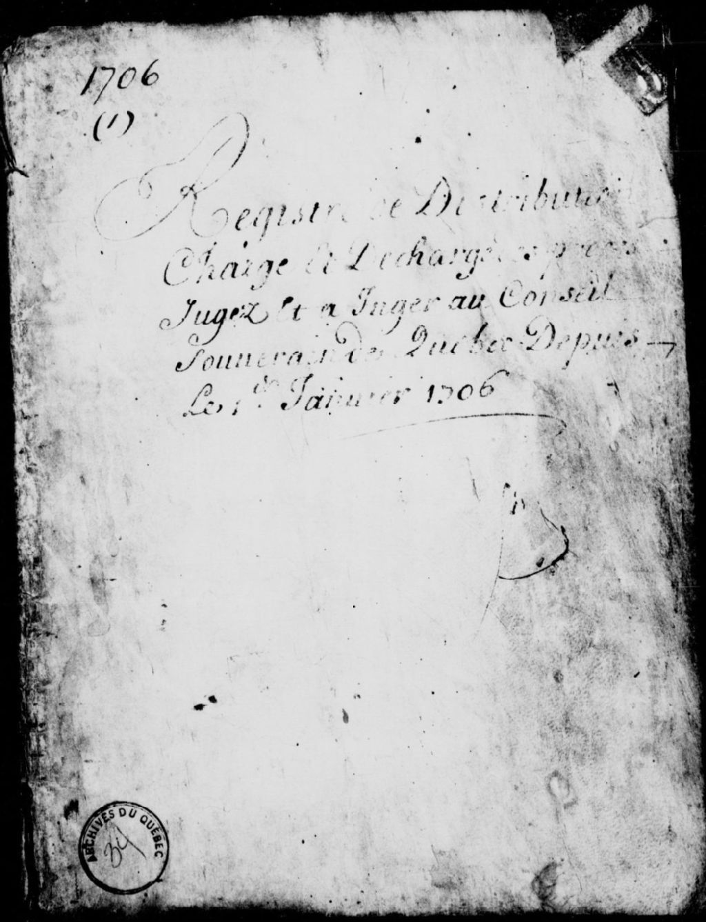 Registre de distribution: charge et décharge des procès jugés et à juger au Conseil supérieur de Québec