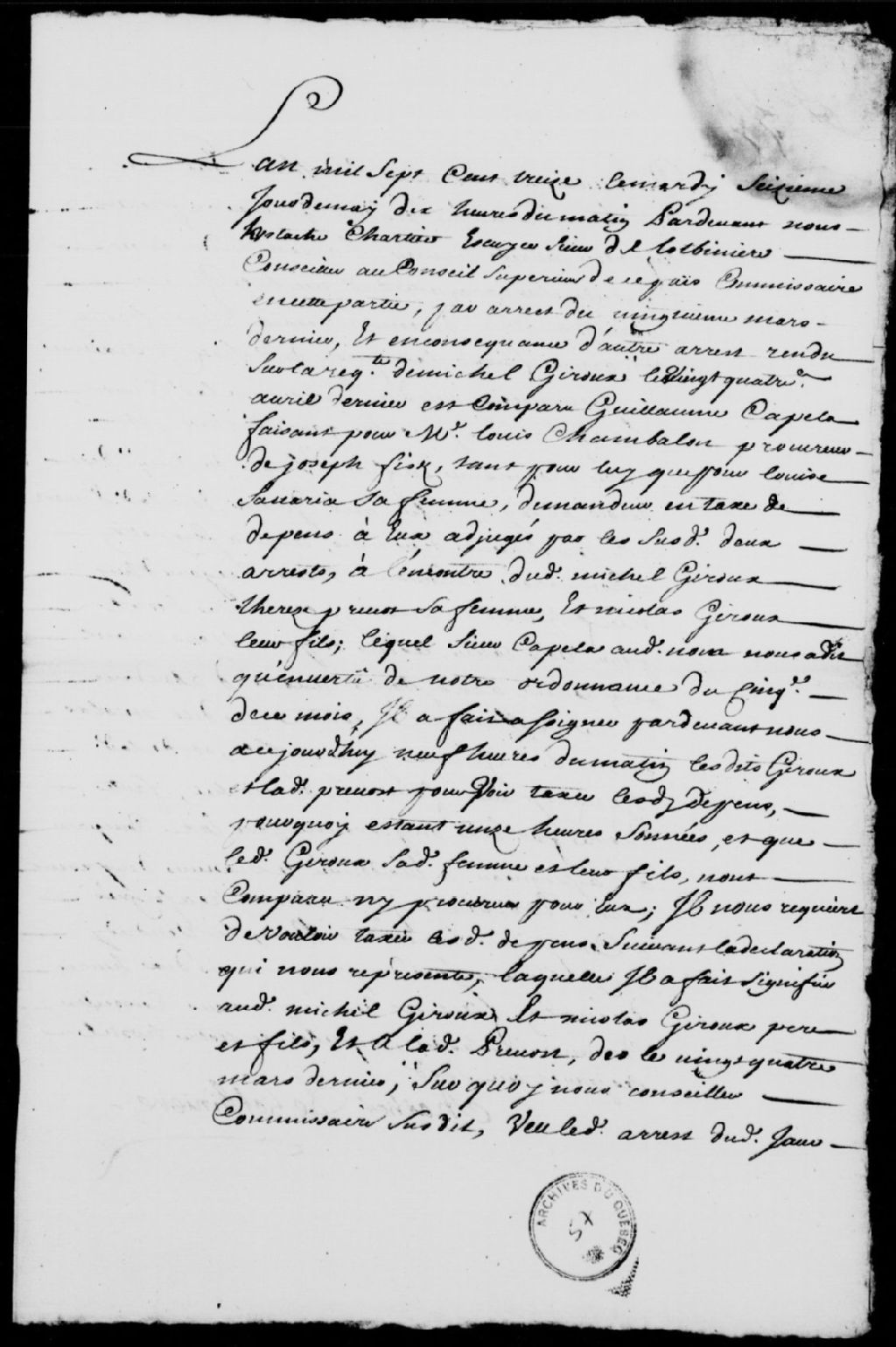 Requête au Conseil supérieur de Québec de la part de Nicolas Blaise des Bergères de Rigauville, officier dans les troupes de la Marine, seigneur de Berthier et de Bellechasse, afin que l'appel fait par Thomas Laforest dit Labranche d'une sentence de vagabondage soit poursuivi; Michel Bégon, intendant de la Nouvelle-France, ordonne que ladite requête soit communiquée audit Laforest, qui viendra au temps spécifié, 21 août 1713, Archives nationales à Québec, Fonds Conseil souverain, (03Q,TP1,S37,D57).