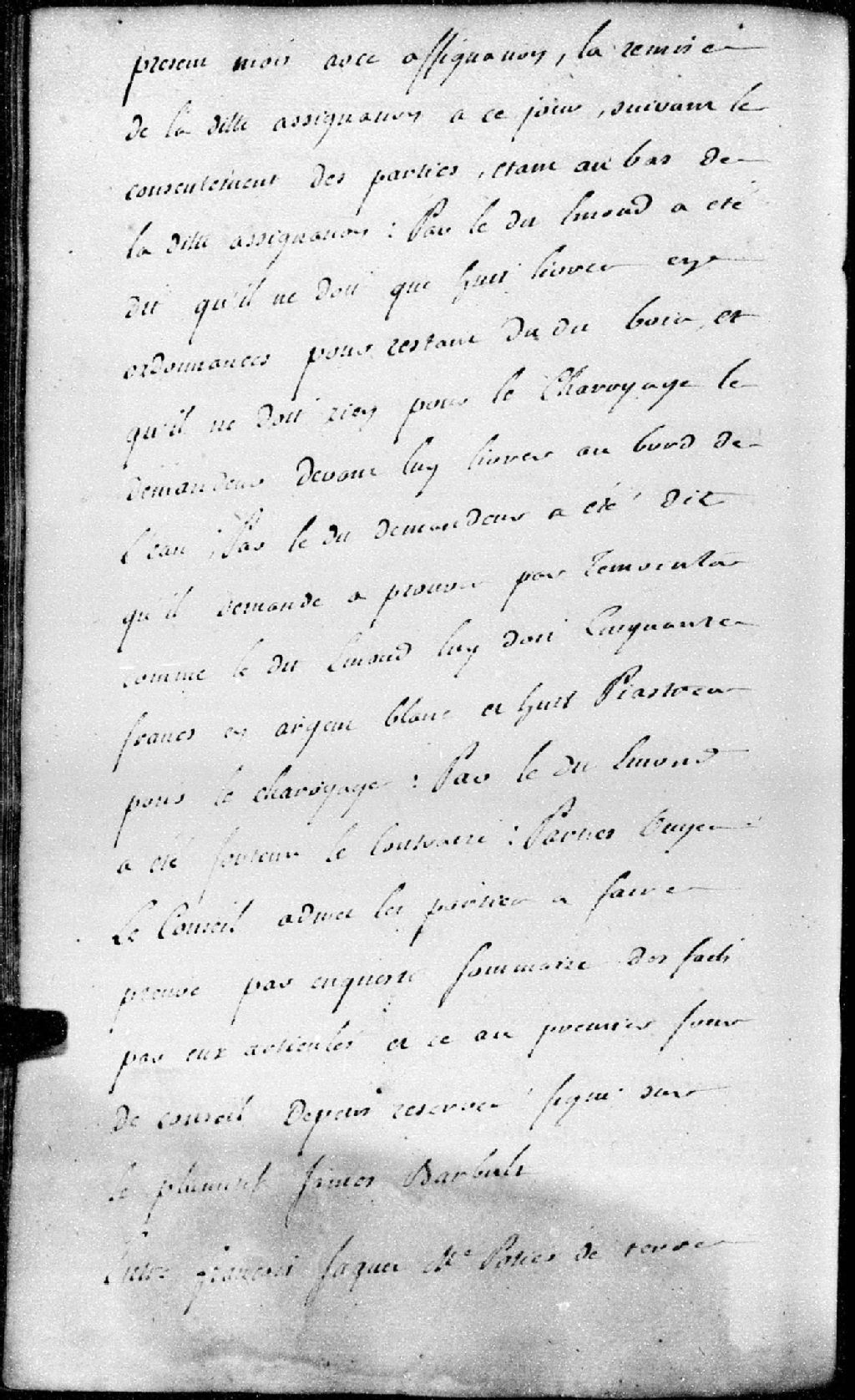 Le Conseil condamne ledit Dambourger à payer au demandeur les 15 minots de blé qu'il lui doit à raison de 9 livres le minot et 1 piastre et demi pour les frais de voyage du défendeur