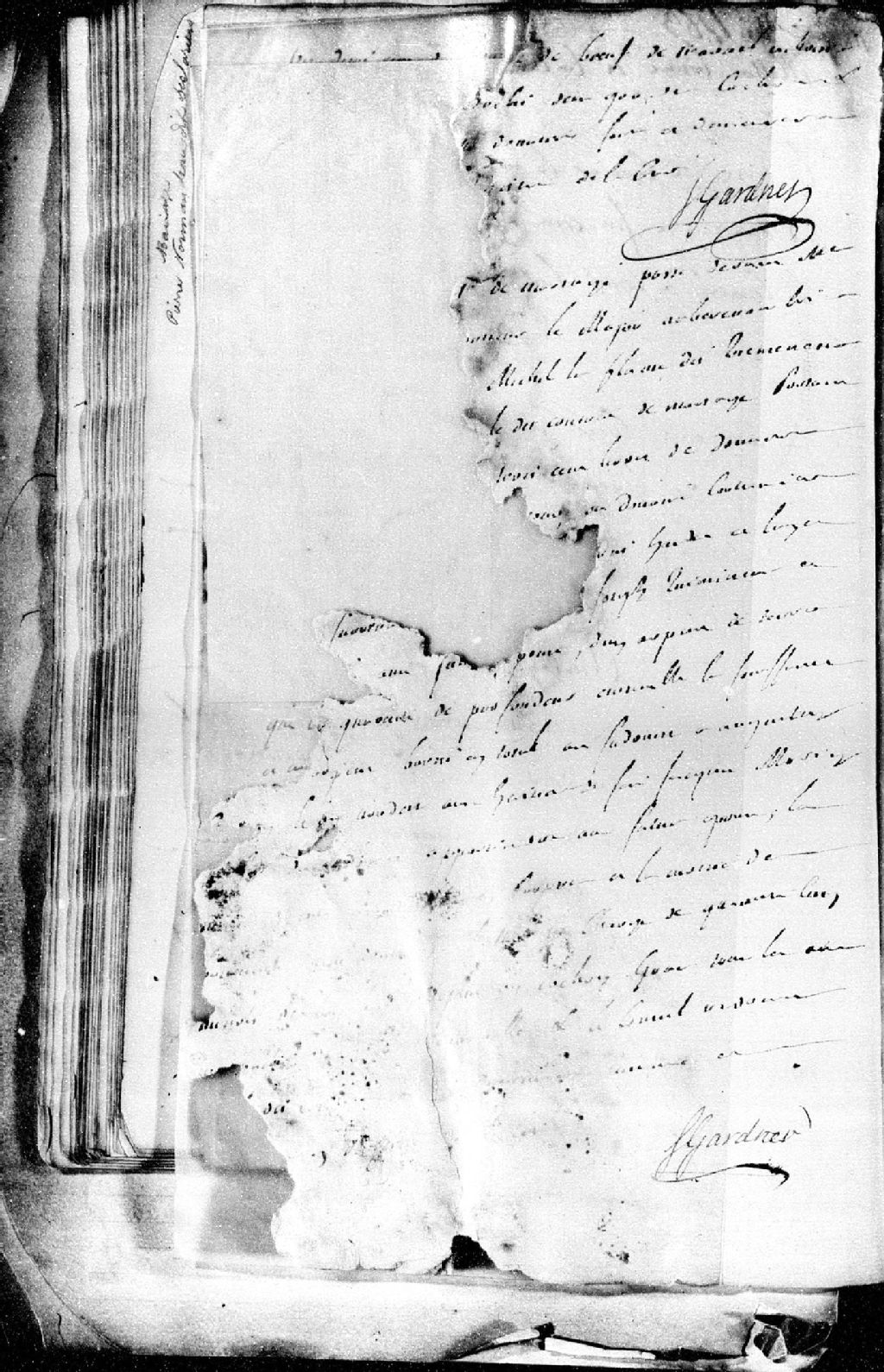 Lecture d'un contrat de mariage. [Les noms des personnes impliquées ne figure pas sur le document car il est incomplet]