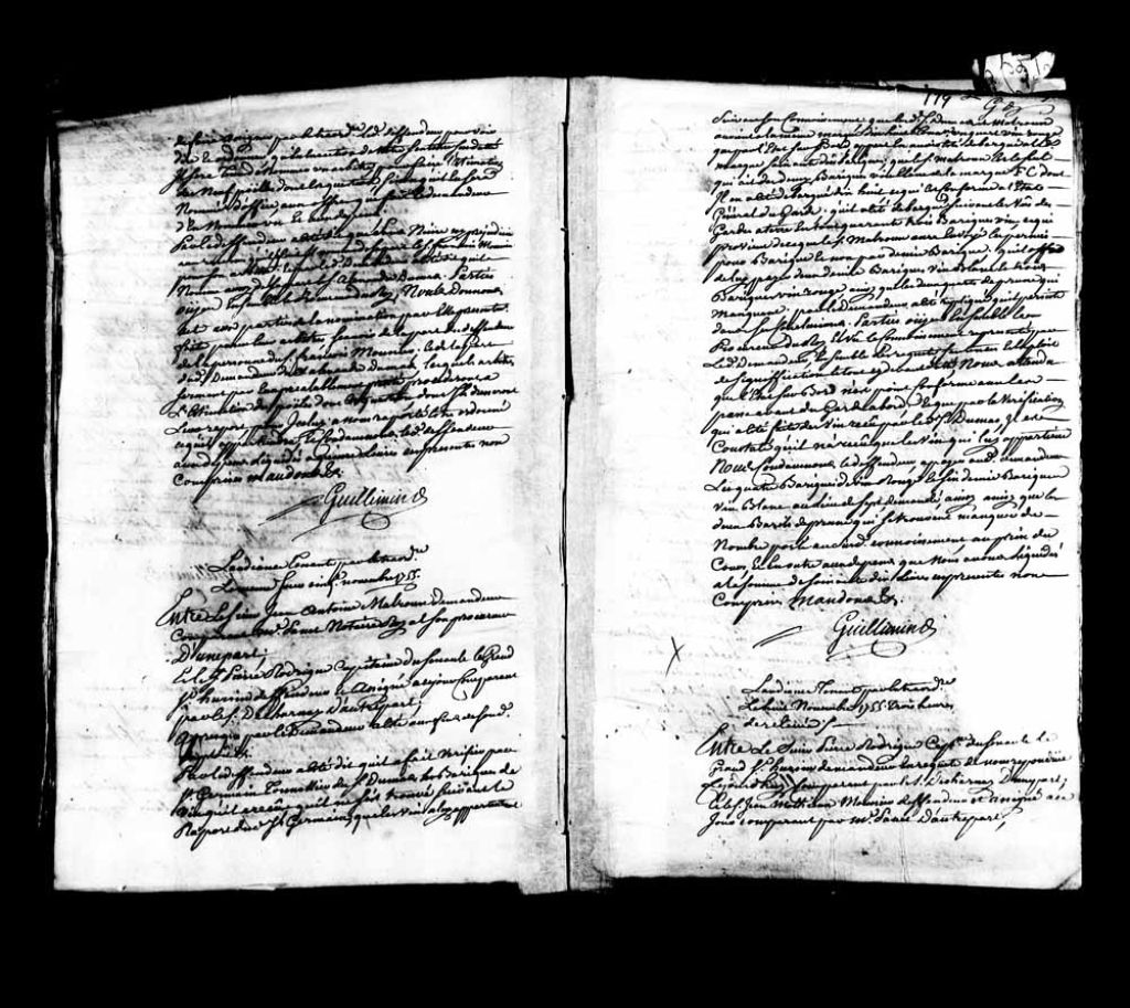 - Le titre complet de la pièce se lit comme suit : Cause entre le sieur Pierre Rodrigue, capitaine du senau (navire de commerce) le Saint-Hursin (le Grand Saint-Ursin), demandeur, comparant par le sieur Decharnay, contre le sieur Jean-Mathieu Mounier, défendeur, comparant par maître Panet. Le demandeur vise à faire assigner le défendeur pour se voir condamner à décharger le connaissement du demandeur pour les effets chargés dans son navire pour le défendeur. Celui-ci plaide qu¿il n¿a jamais refusé de décharger le connaissement sauf à l¿égard de quatre trépieds de poêle de fer qui n¿ont pas été remis, se constituant incidemment demandeur à cet effet afin de remise des trépieds ou en payer la valeur. Le demandeur répond qu¿il n¿avait à bord que 27 trépieds de poêle, 15 pour le demandeur et 12 pour le sieur Samaltrie. Tous ont été débarqués selon l¿état du sieur Dutreny, garde du domaine, suivant le certificat du sieur LaBévisteur. Le [...]