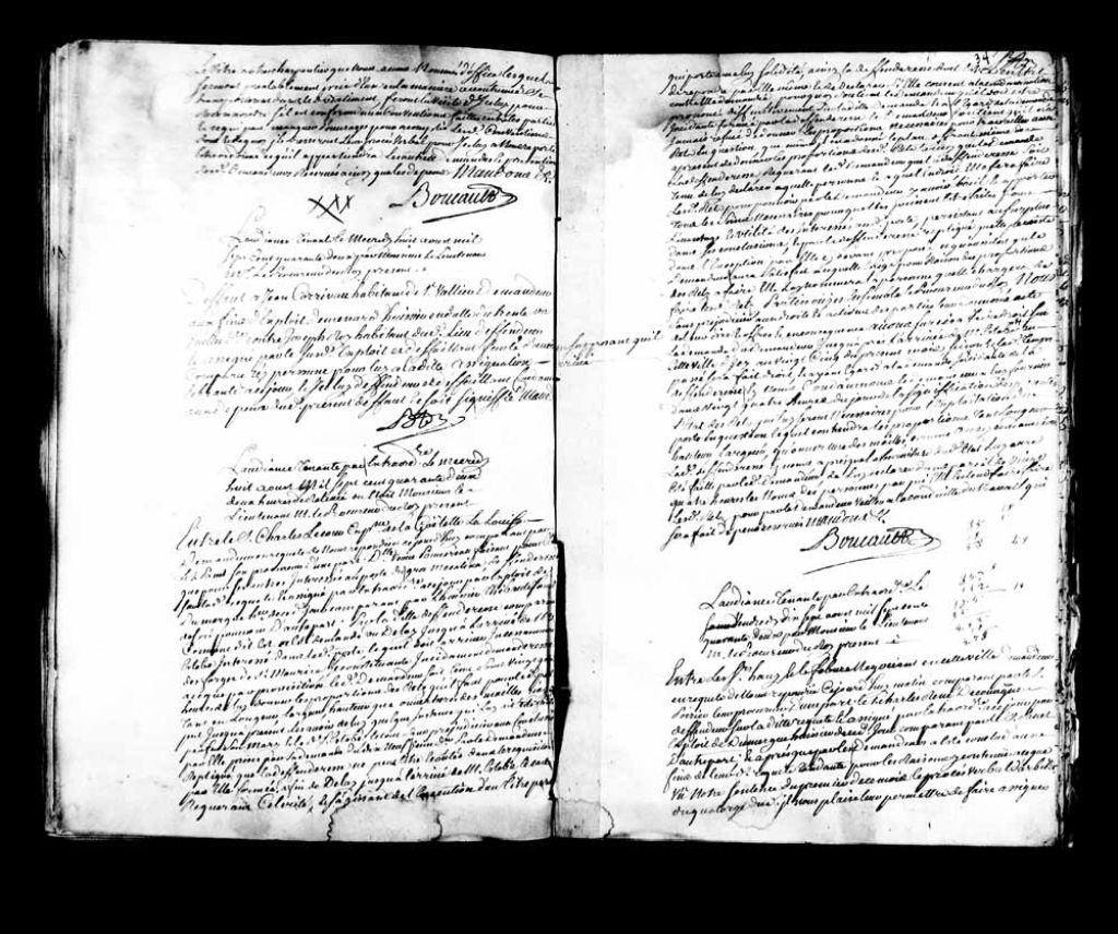 Cause entre le sieur Charles Lecours, capitaine de la goélette La Louise, demandeur, comparant par le sieur Panet, son procureur, contre la damoiselle veuve Pomereau (Pommereau), faisant tant pour elle que pour les autres intéressés au poste du gros Mécatina, défenderesse, comparant par l’huissier Thibault, fondé de son pouvoir. La défenderesse demande un délai jusqu’à l’arrivé du sieur Guillaume Estèbe, intéressé dans ledit poste, lequel doit arriver incessamment des forges du Saint-Maurice. Le tribunal accorde le sursis demandé jusqu’à l’arrivée du sieur Estèbe. Ledit demandeur est condamné à fournir à ladite demanderesse l’état des rets (filet, ouvrage de corde) qui lui seront nécessaires pour l’exploitation du poste en question, lequel contiendra les proportions longueur, hauteur et largeur ainsi que l’ouverture des mailles. Ladite demanderesse devra, après la fourniture desdits états, déclarer au demandeur le nom des personnes par qui elle entend faire faire lesdits rets.