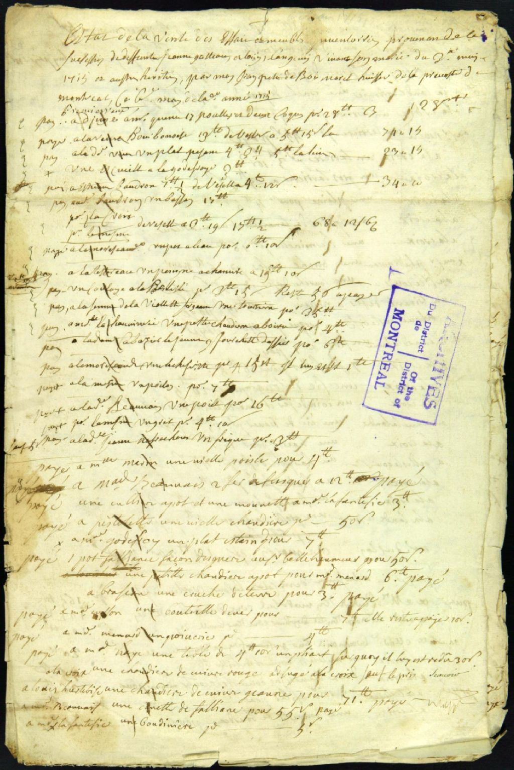 - Vente et partage des effets de la succession de Louis Langevin dit Lacroix et sa femme Jeanne Gateau