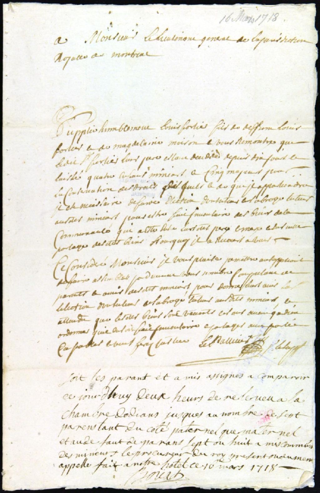 - Tutelles des enfants mineurs de feu Louis Fortier et de feu Madeleine Moison