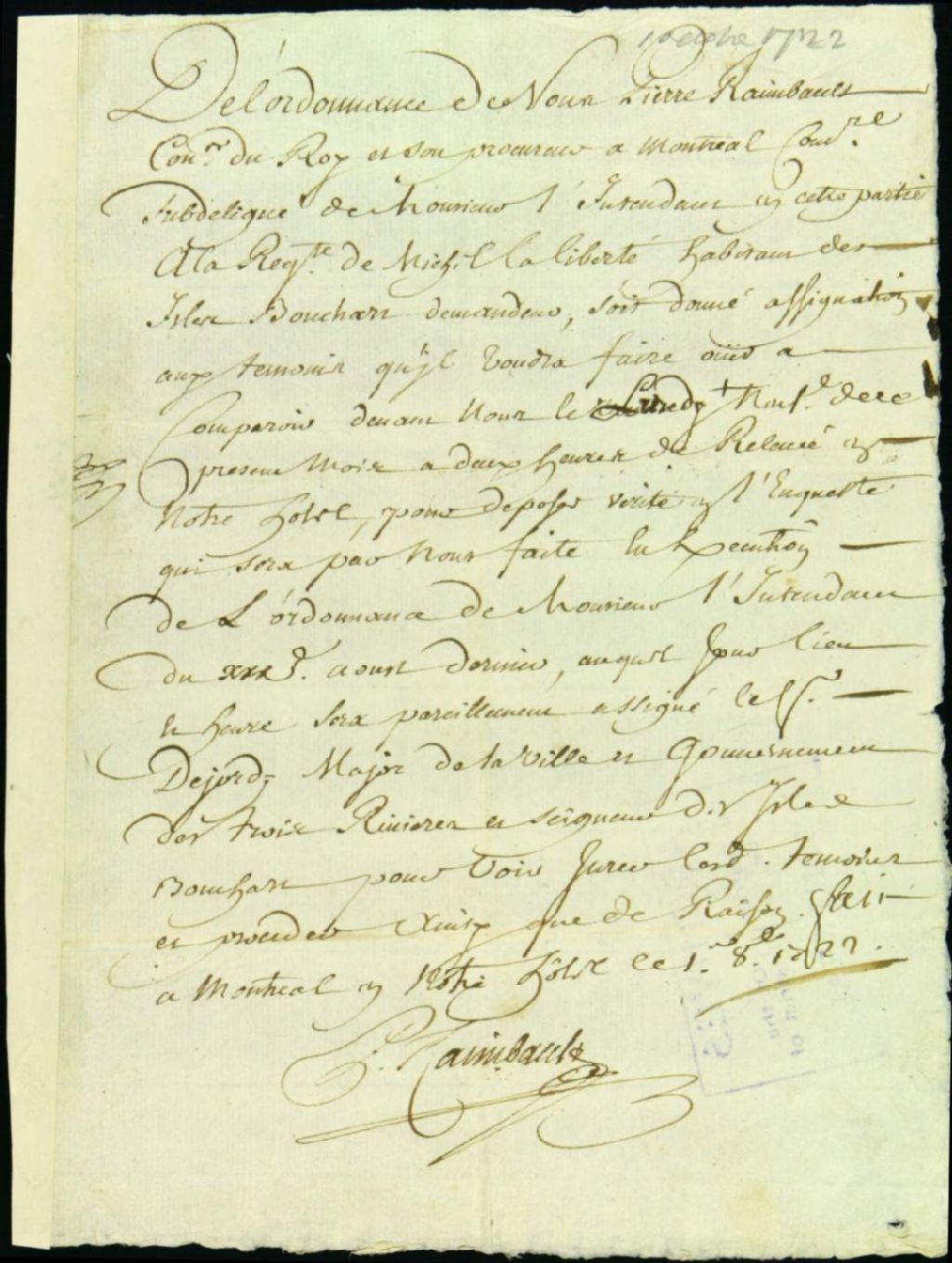- 1 octobre 1722 - 19 octobre 1722