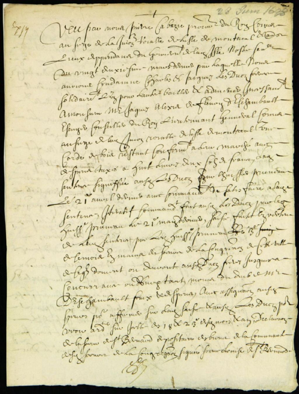 - Procès entre Alexis de Fleury, sieur Deschambault, demandeur, et les frères Charles, Jacques, Joseph et Philippe Leduc, défendeurs, pour la saisie d'une corde de bois