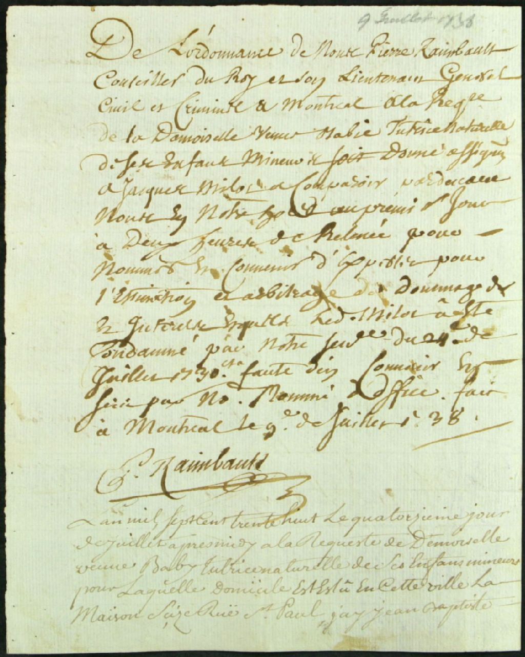 - Procès entre la veuve de Babie, demanderesse, et Jacques Milot, défendeur, pour dommages